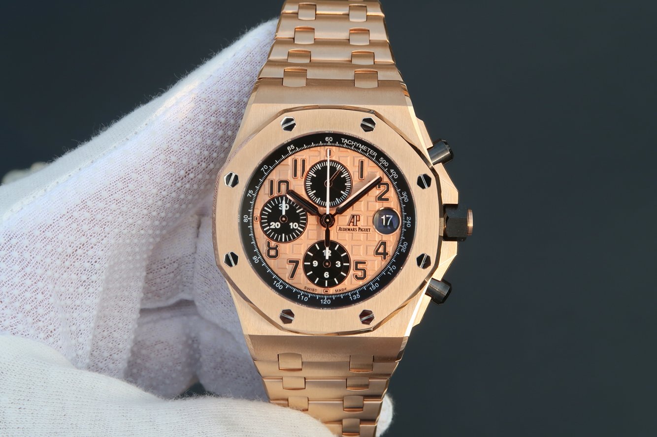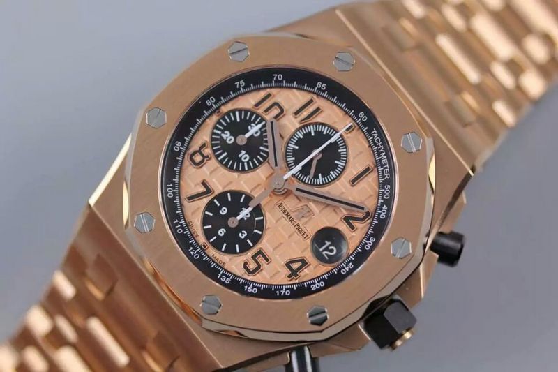 ساعة أوديمار بيغيه Audemars Piguet للرجال ميرور اوريجينال موديل Royal Oak Offshore 26470OR.OO.1000OR.01 لون روز جولد و استيك معدن ستانلس لون روز جولد.