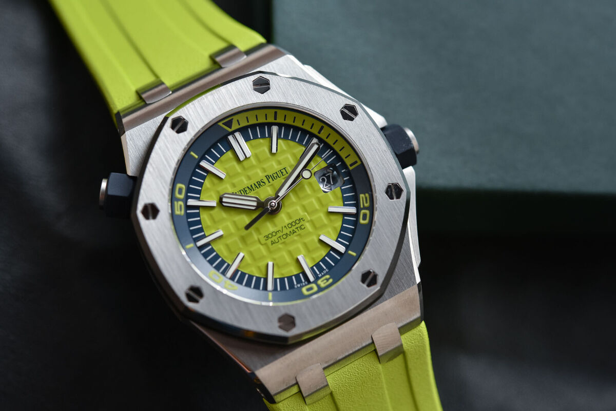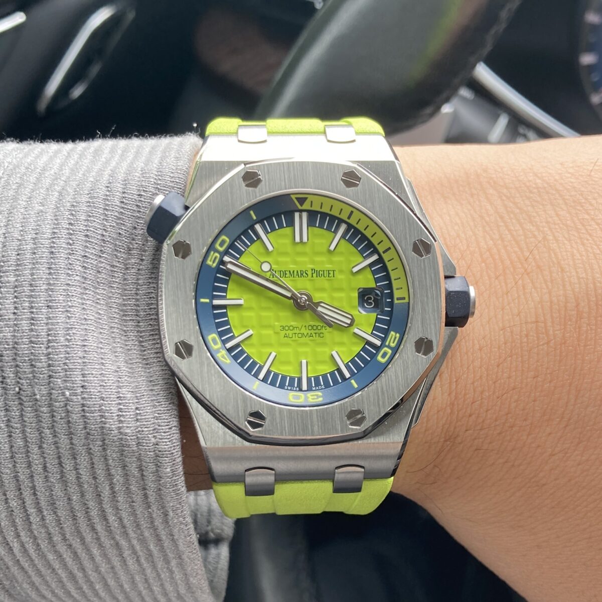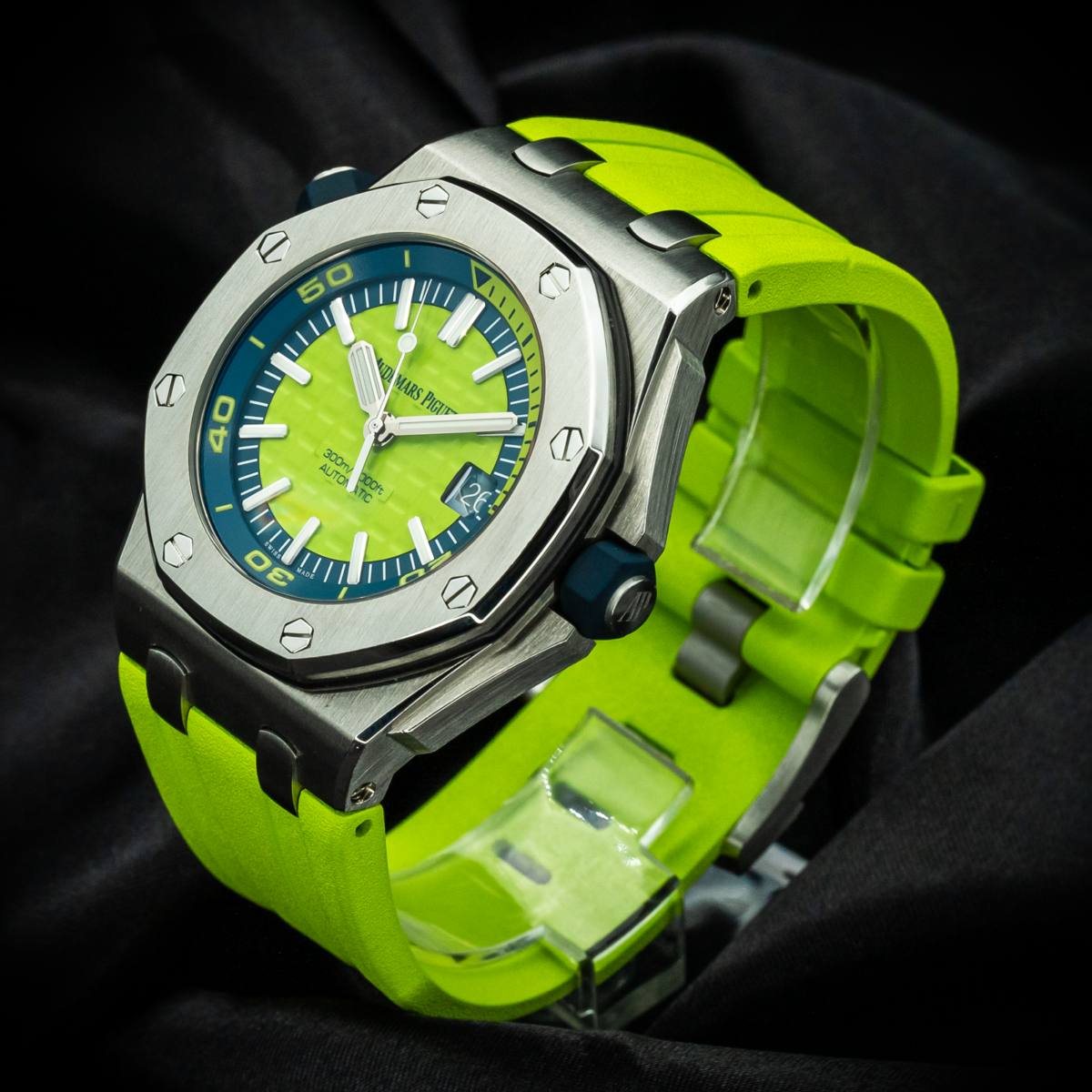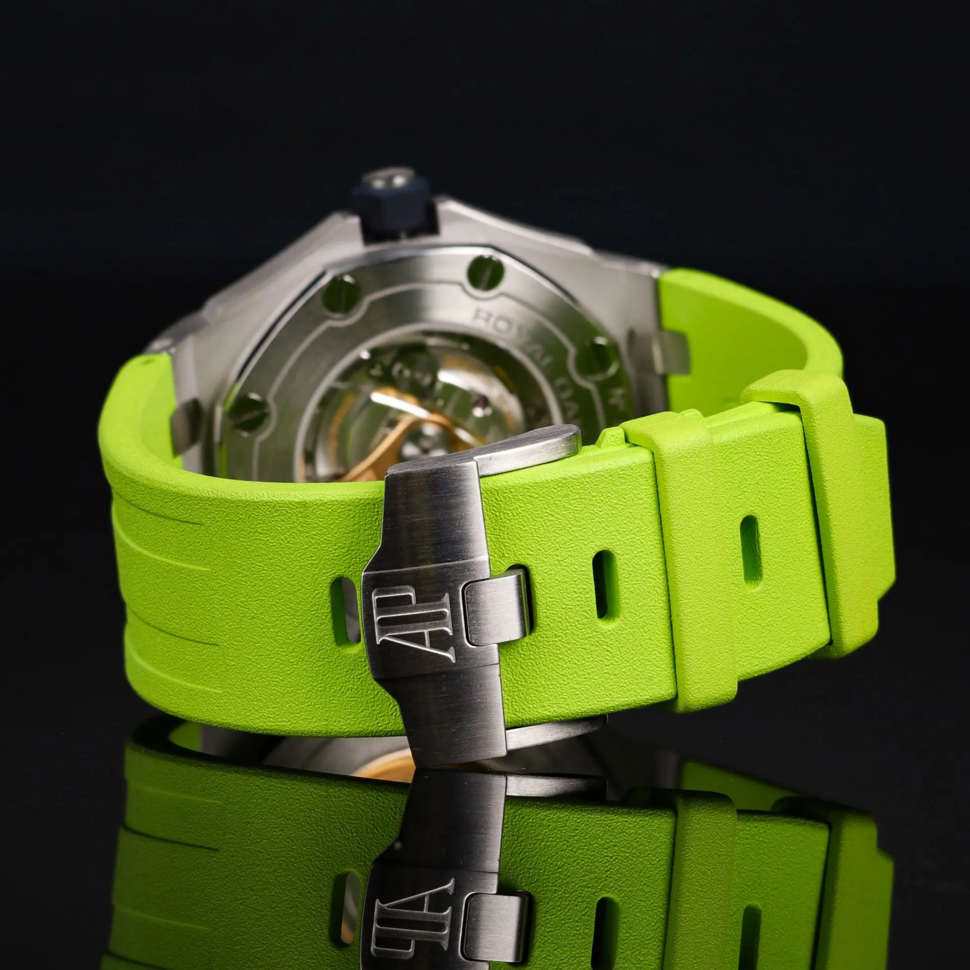 ساعة أوديمار بيغيه Audemars Piguet للرجال ميرور اوريجينال موديل Royal Oak Offshore 15710ST.OO.A038CA.01 لون اخضر و استيك سيليكون مطاط لون اخضر.