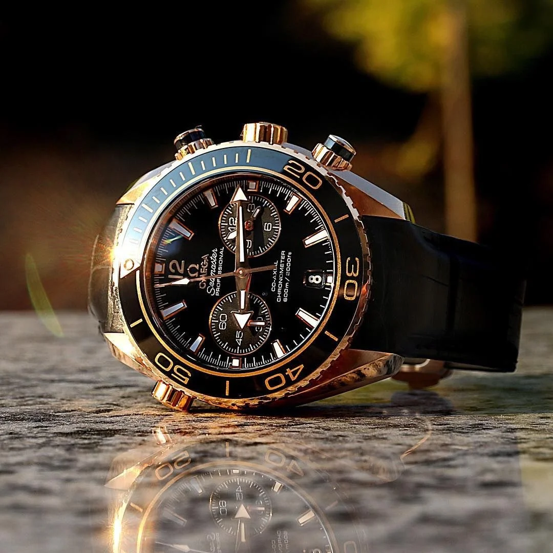 ساعة اوميجا للرجال Omega (ميرور اوريجينال) موديل Seamaster Planet Ocean 232.63.46.51.01.001 لون أسود و استيك جلد طبيعي لون أسود.