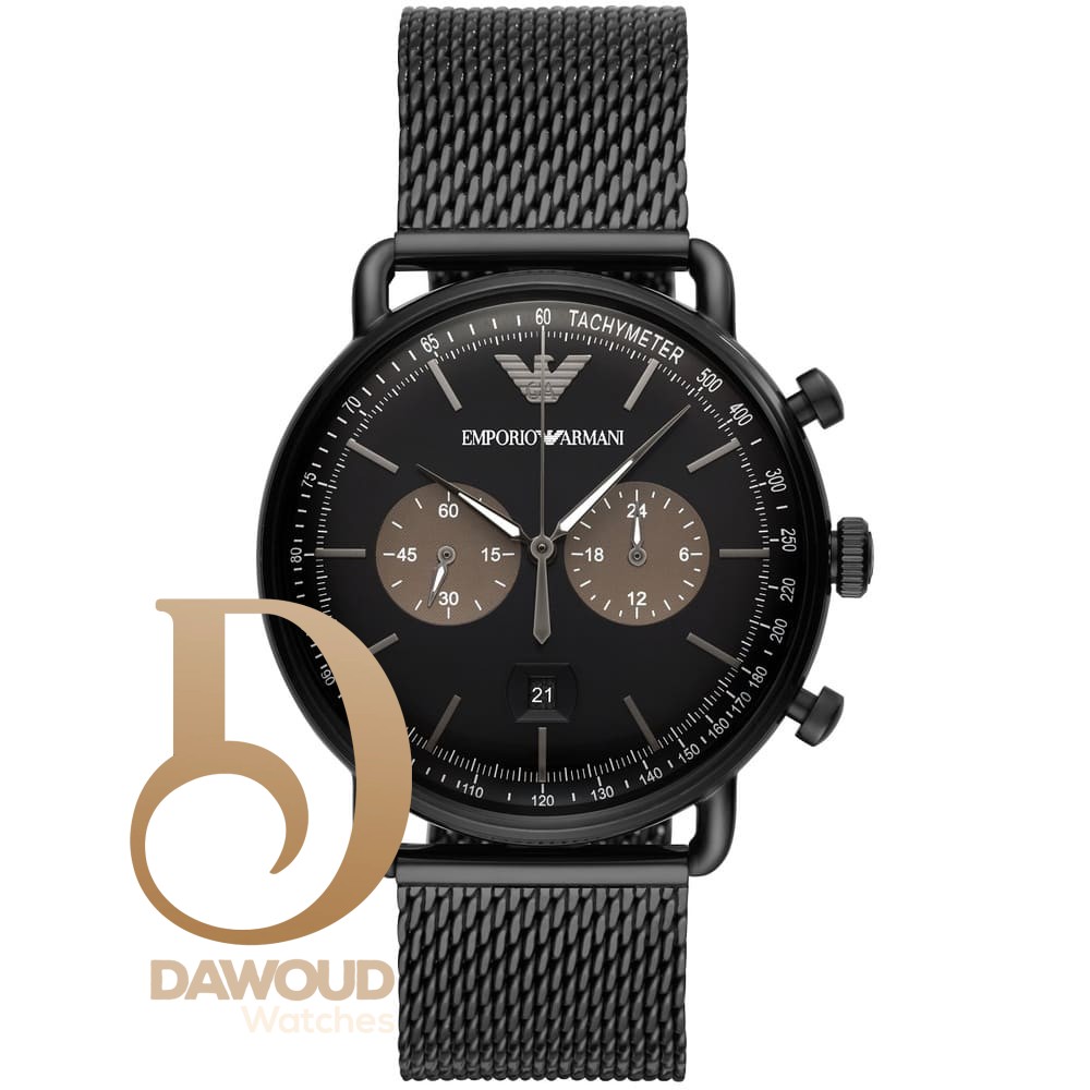 ساعة امبوريو ارماني للرجال اصلية موديل ( أفياتور) Aviator AR11142 بلون اسود واستيك لون اسود
