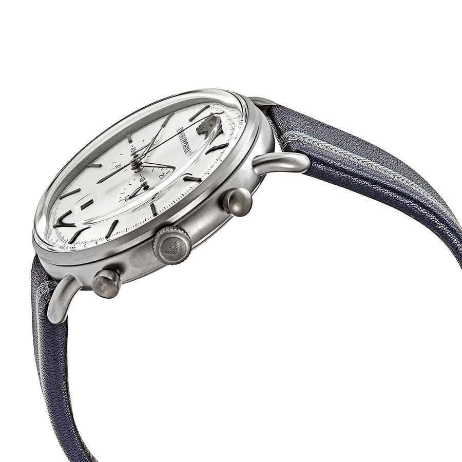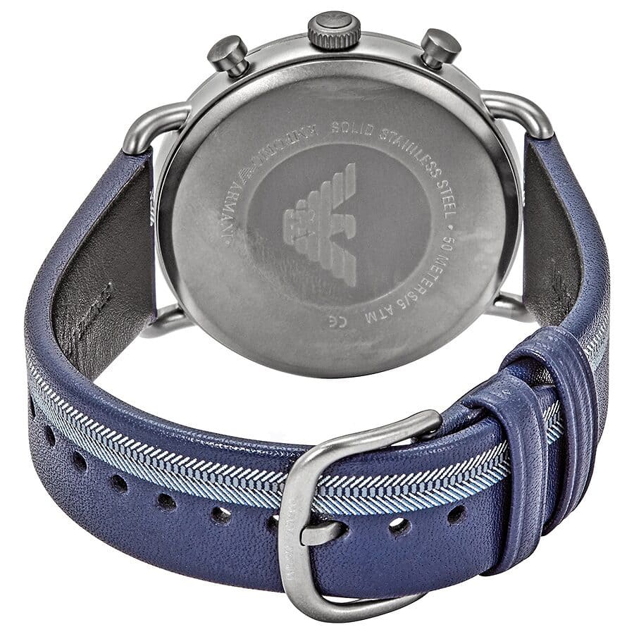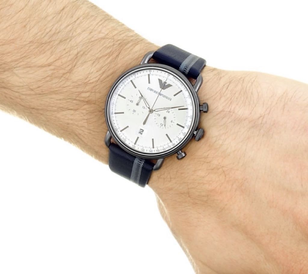 ساعة امبوريو ارماني للرجال اصلية موديل (أفياتور) Aviator AR11202 بلون فضي واستيك لون ازرق