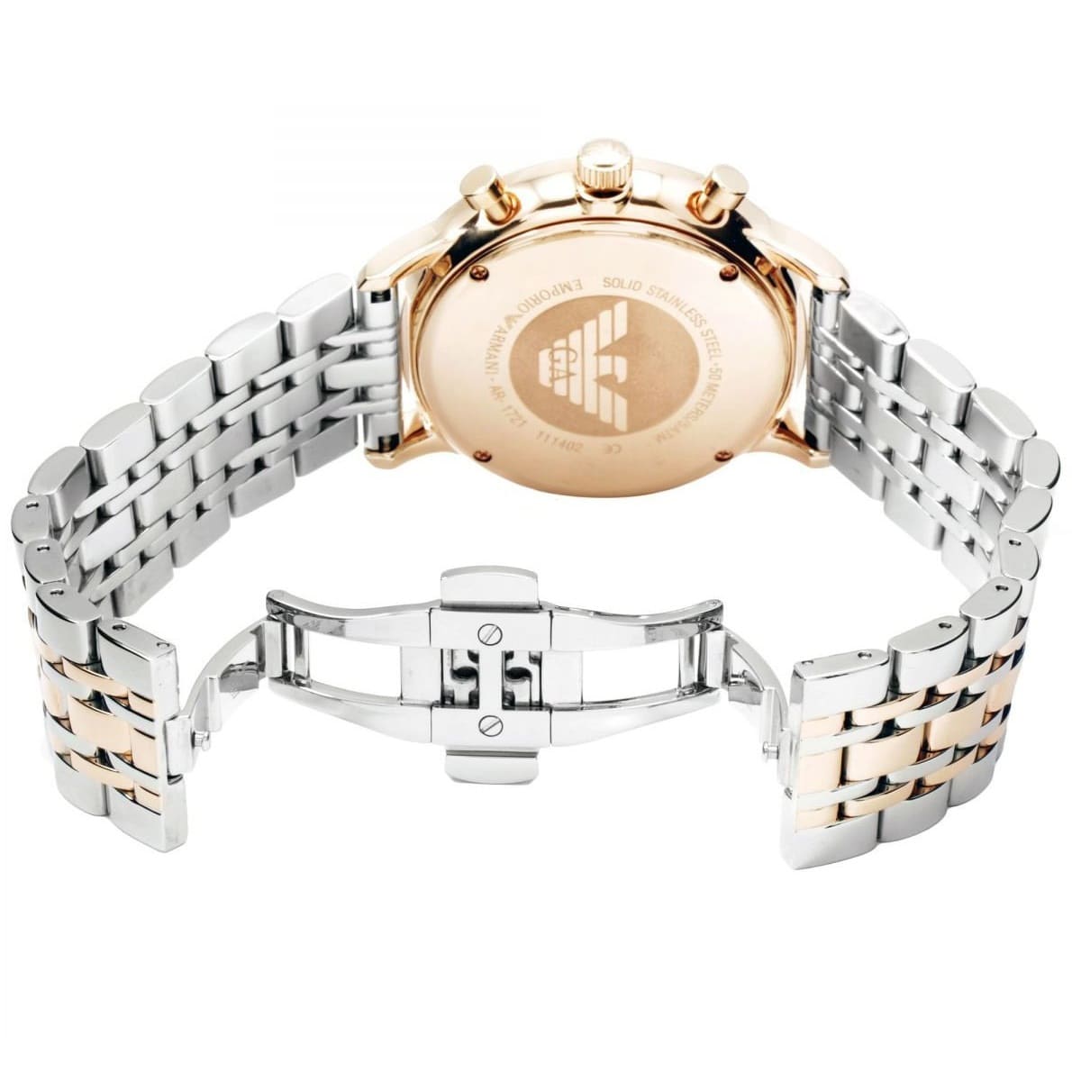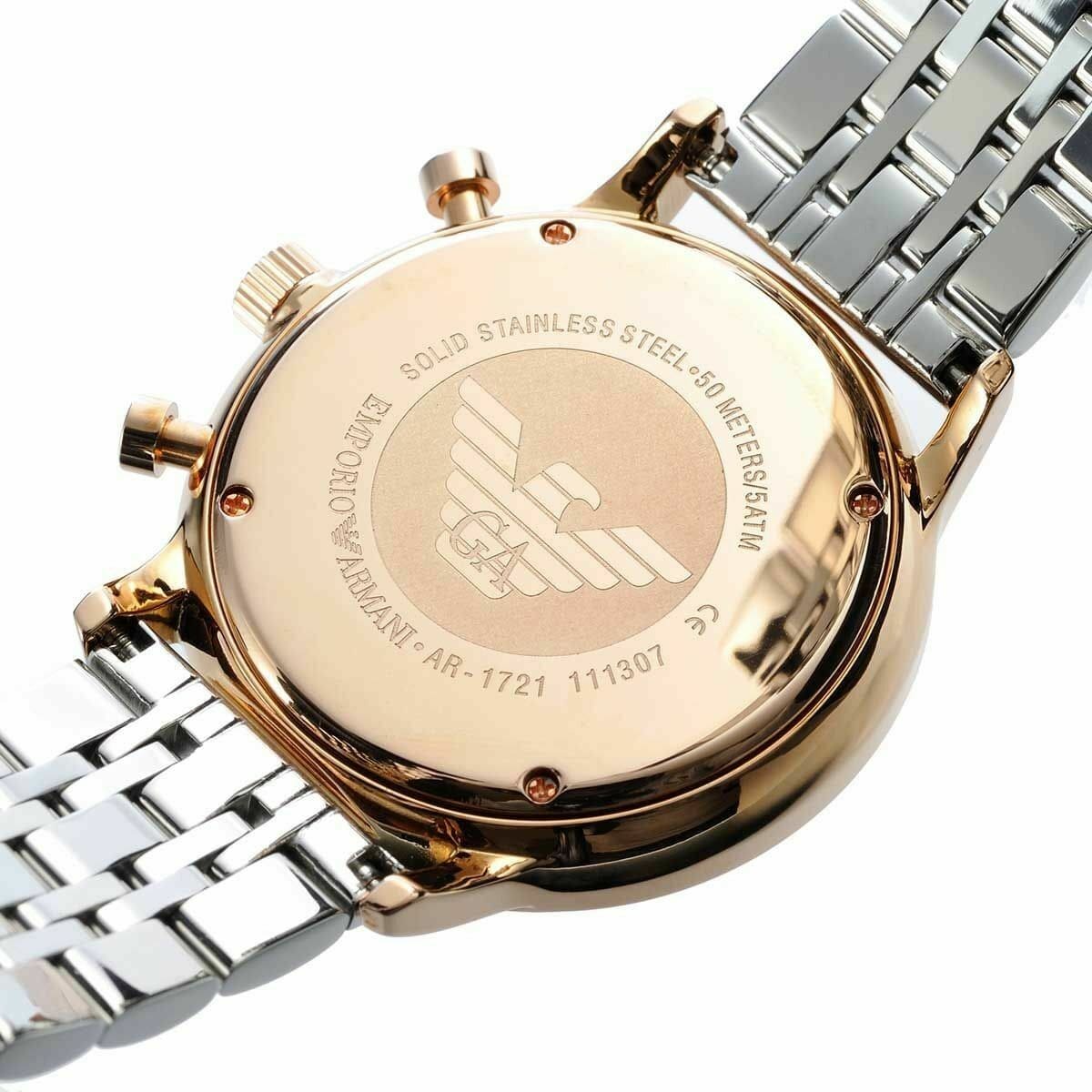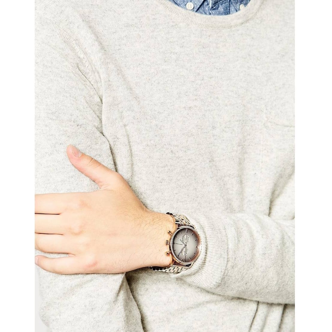 ساعة امبوريو ارماني للرجال اصلية موديل (جياني) Gianni AR1721 بلون رمادي واستيك لون فضي و نحاسي