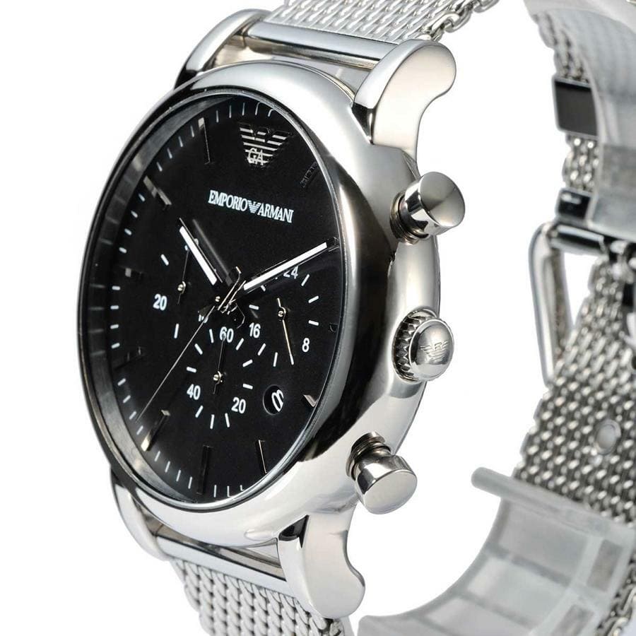 ساعة امبوريو ارماني للرجال اصلية موديل (لويجي) Luigi AR1808 بلون اسود واستيك معدن بلون فضي