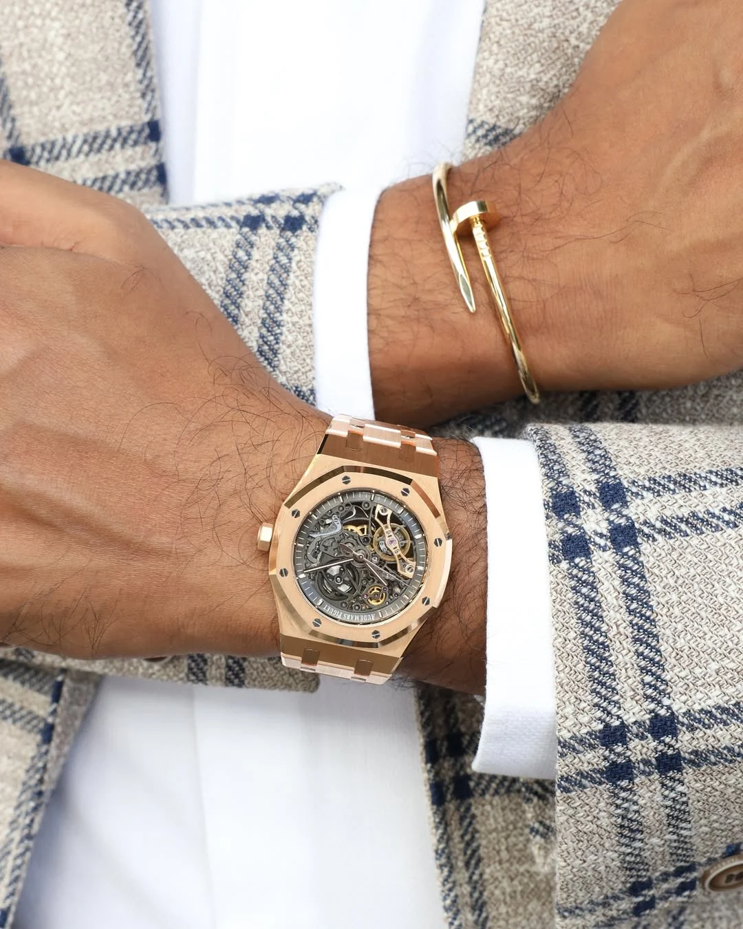 ساعة اوديمار بيغيه رويال أووك ميرور أوريجنال للرجال  موديل (AUDEMARS PIGUET ROYAL OAK) بلون نحاسي واوستيك ستنلس ستيل لون نحاسي