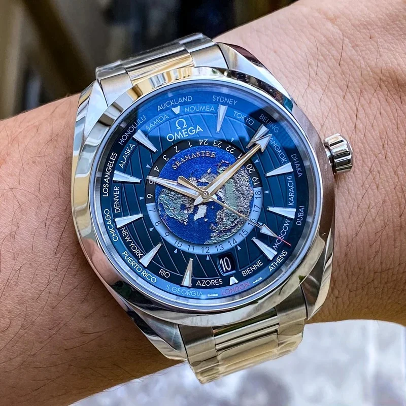 ساعة اوميجا للرجال Omega (ميرور اوريجينال) موديل Seamaster Aqua Terra 220.10.43.22.03.001 لون أزرق و استيك معدن ستانلس لون فضي.