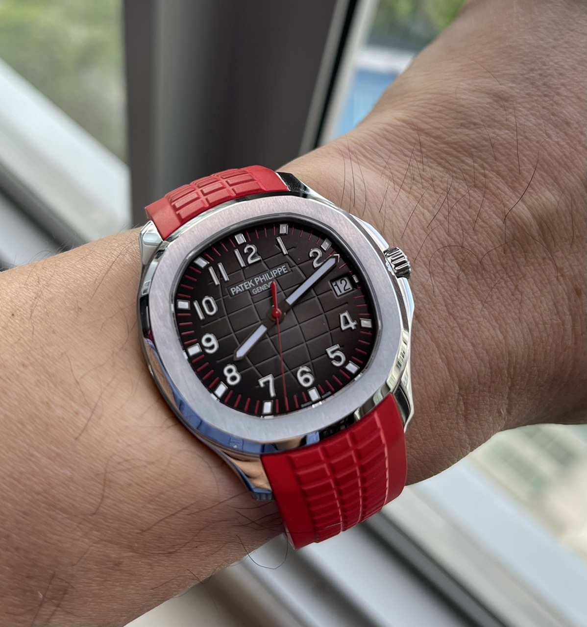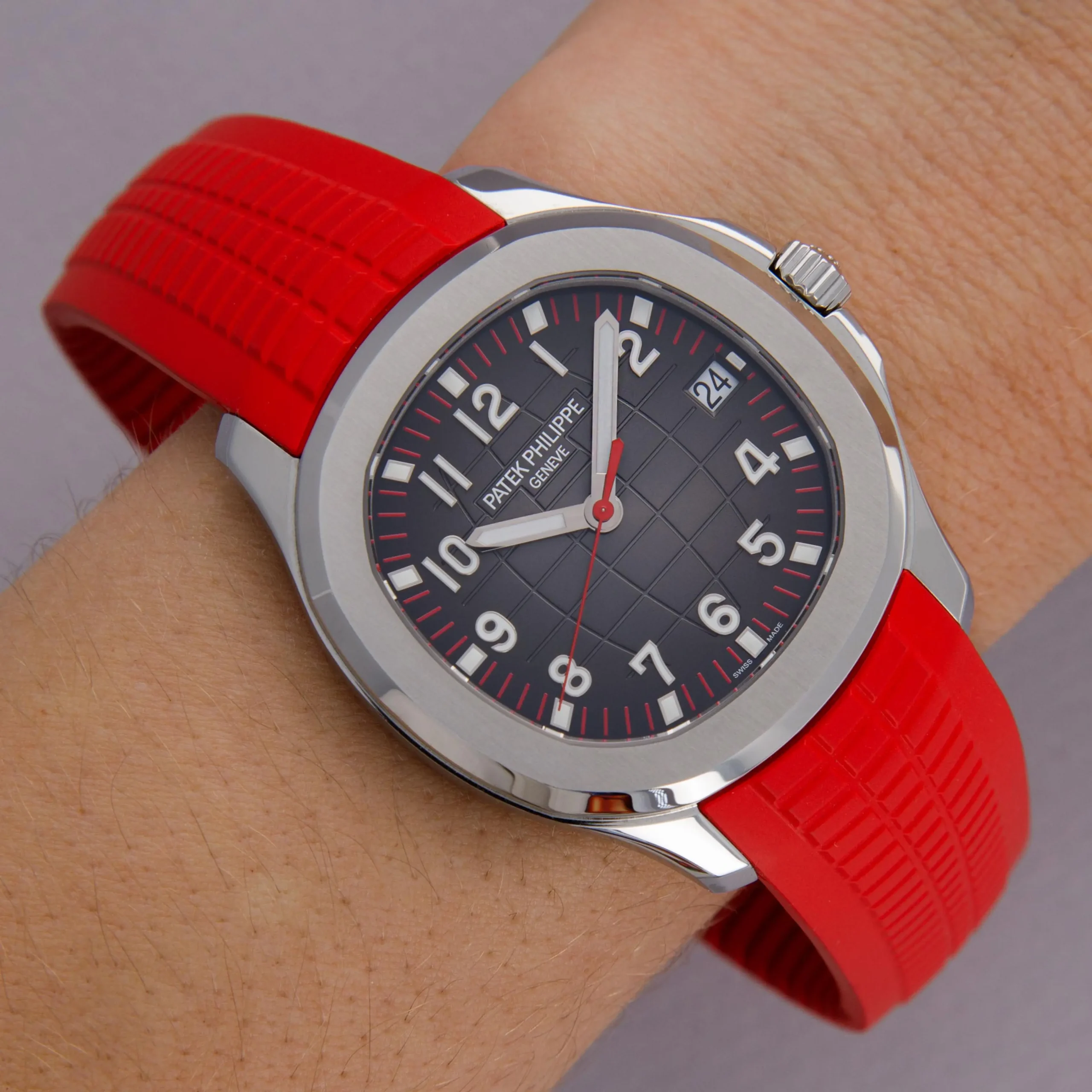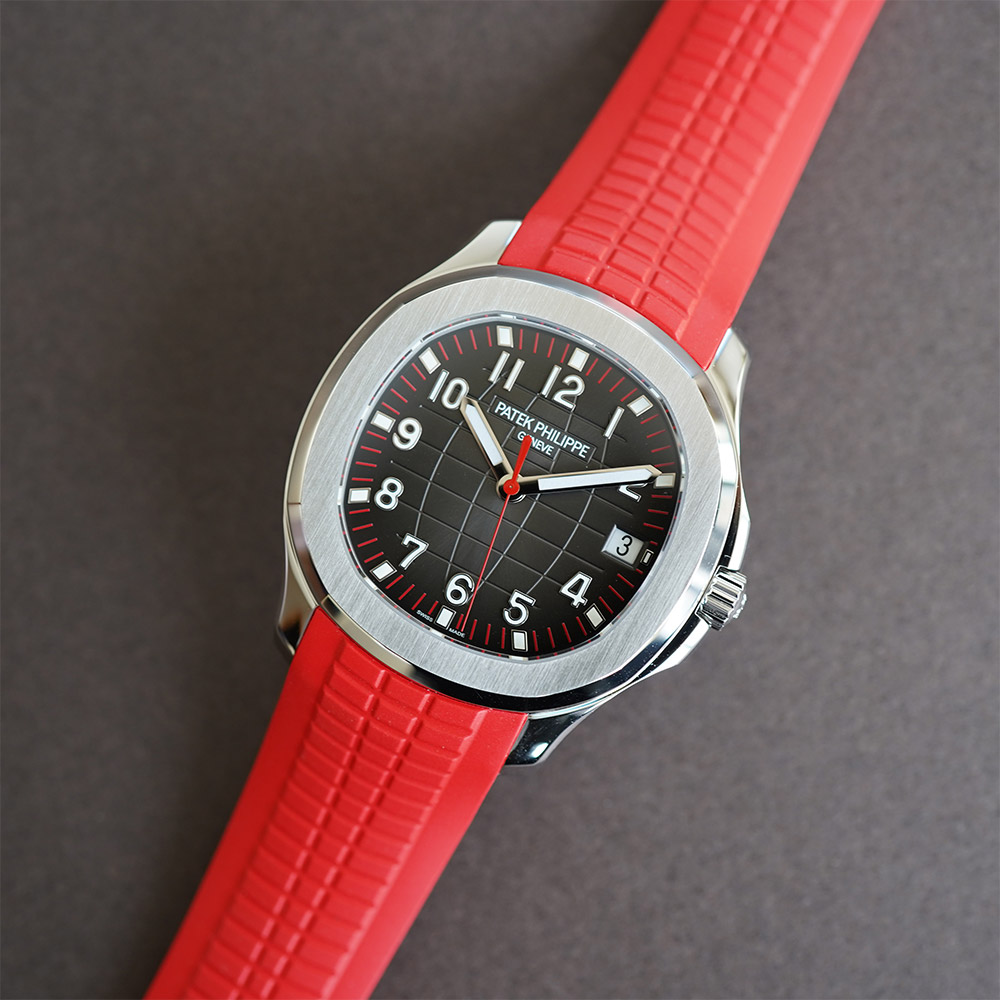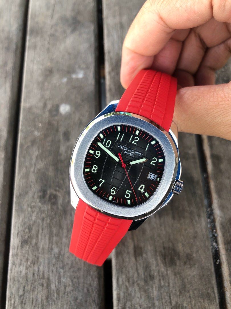 ساعة باتيك فيليب Patek Philippe للرجال (ميرور اوريجنال) موديل Aquanaut 5167A-012 لون اسود و استيك سيليكون مطاط لون احمر.