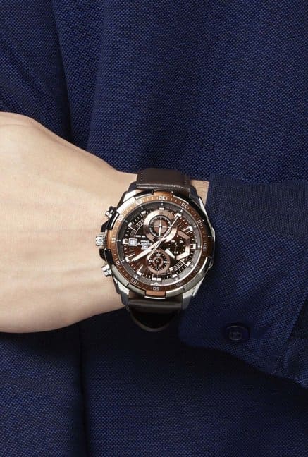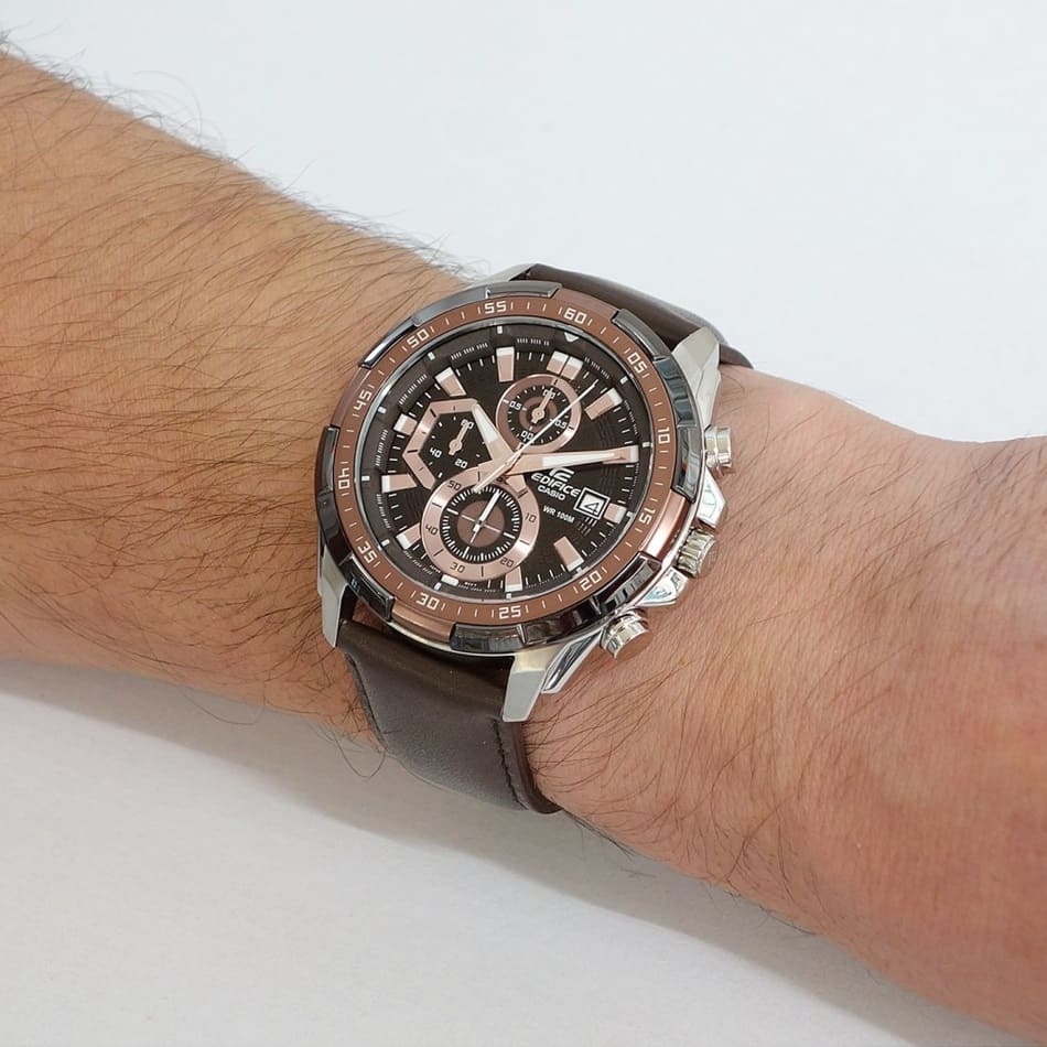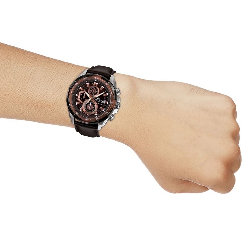 ساعة بنى كاسيو اديفيس رجالية جلد كرونوغراف