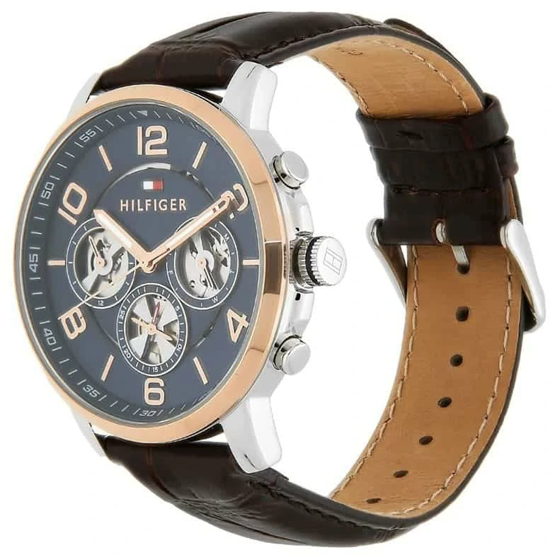 ساعة تومي هيلفيغر للرجال اصلية موديل  لون ازرق واستيك جلد طبيعي لون بني.