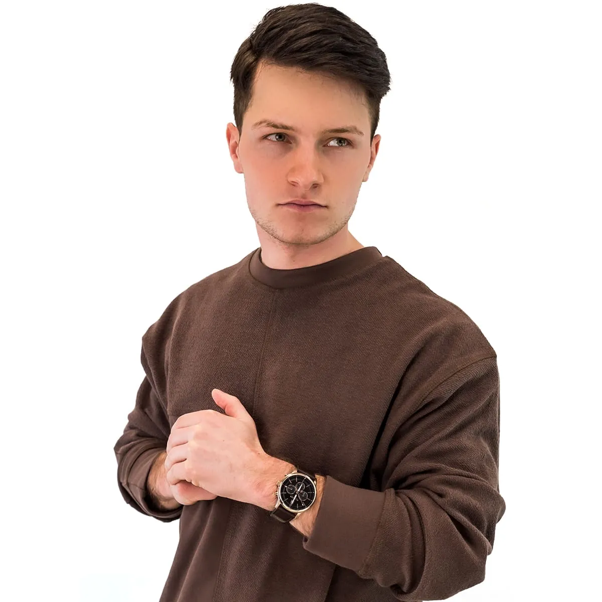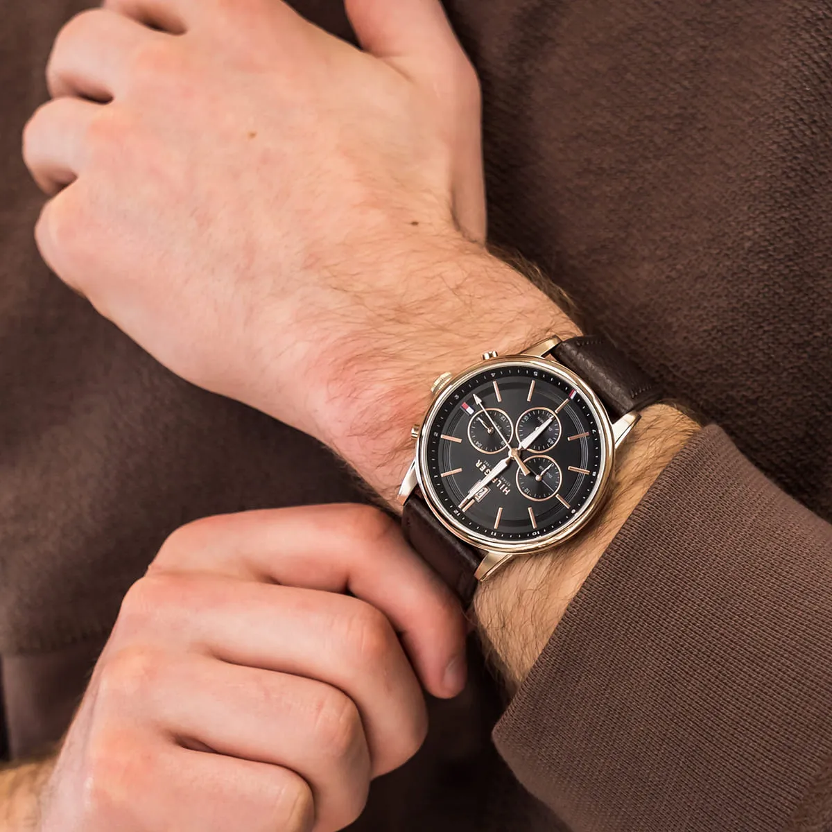 ساعة تومي هيلفيغر Tommy Hilfiger للرجال أصلية موديل 1791631 لون اسود و استيك جلد طبيعي لون بني.