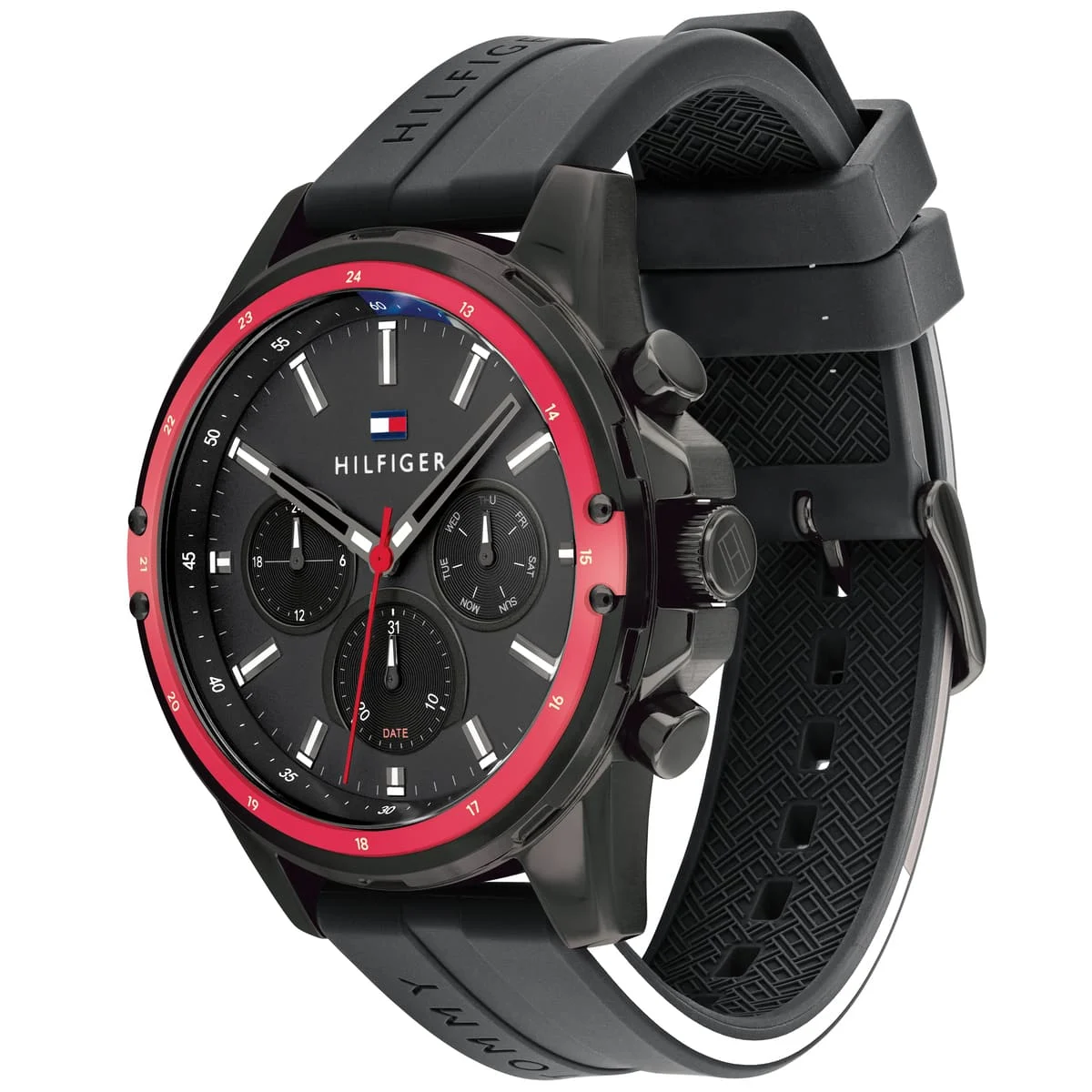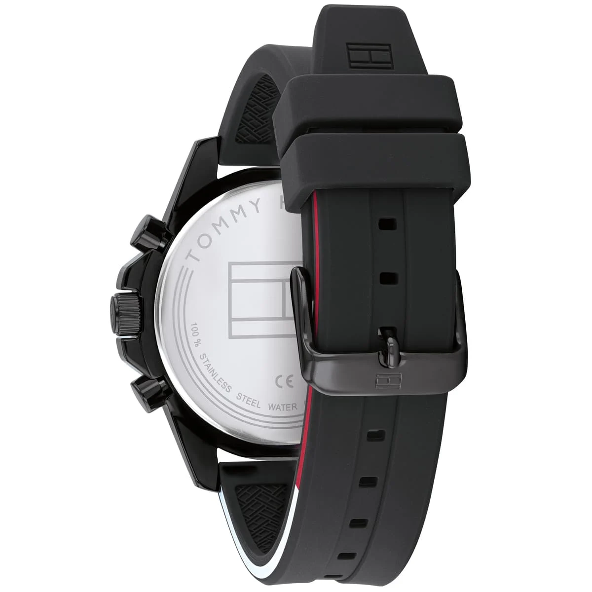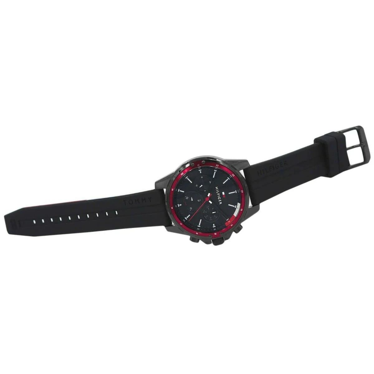 ساعة تومي هيلفيغر للرجال أصلية موديل لون اسود و استيك سيليكون مطاط لون اسود.