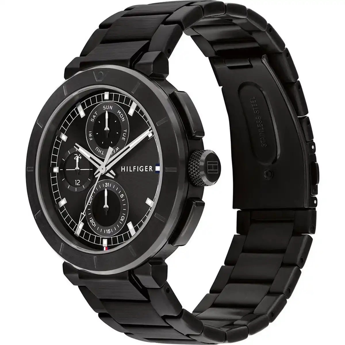 ساعة تومي هيلفيغر للرجال أصلية موديل 1792119 لون اسود و استيك معدن ستانلس لون اسود.