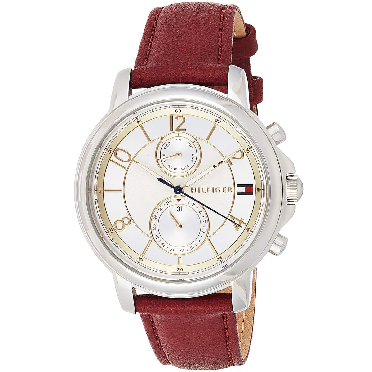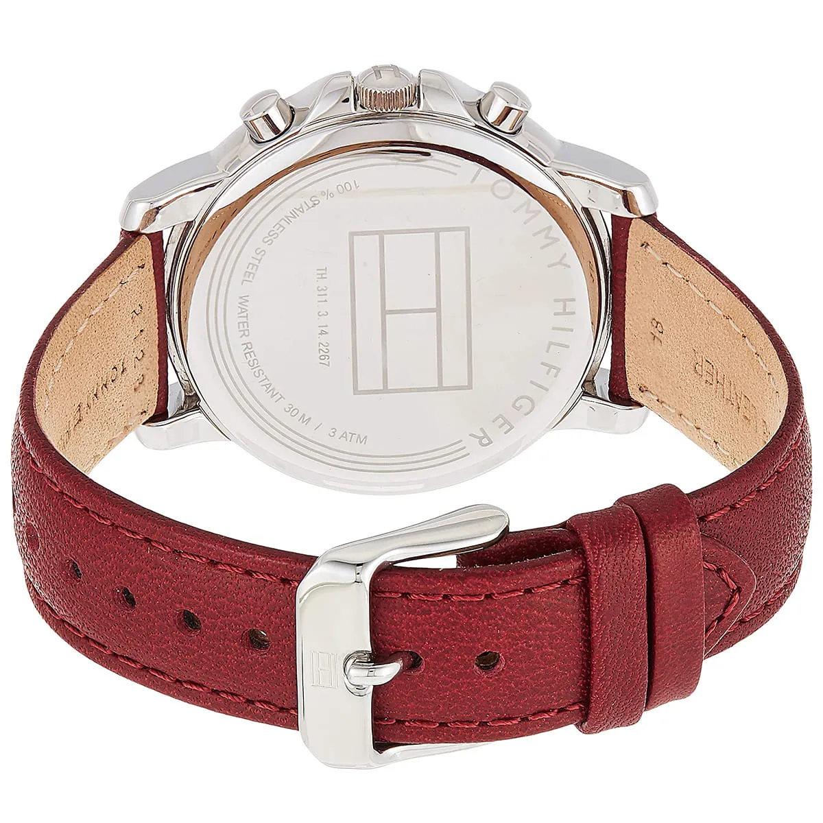 ساعة تومي هيلفيغر Tommy Hilfiger للسيدات أصلية موديل 1781816 Claudia لون بيج و استيك جلد طبيعي لون احمر.