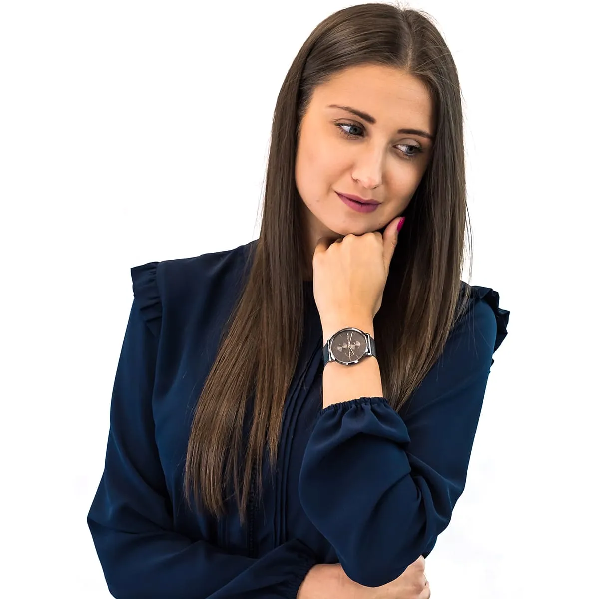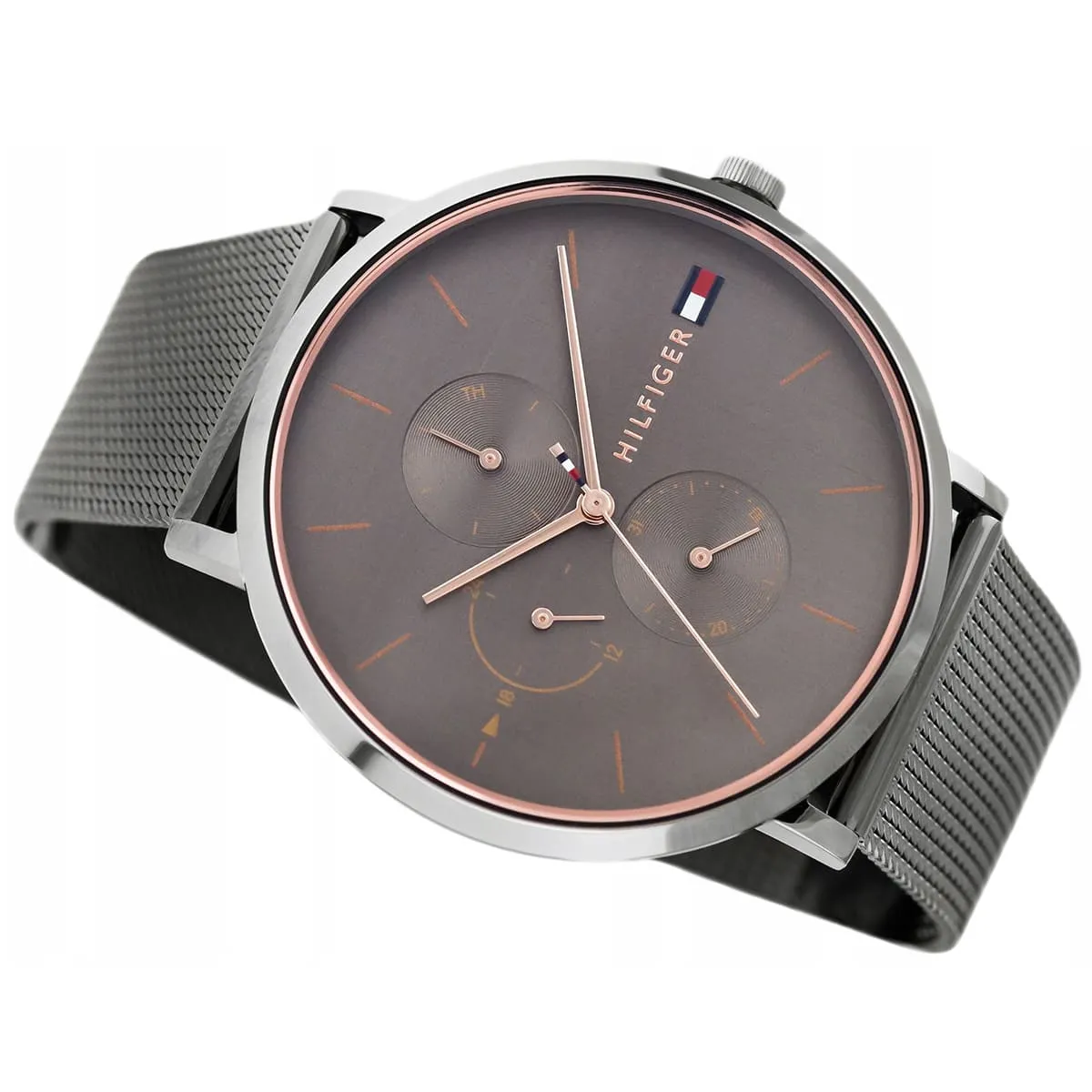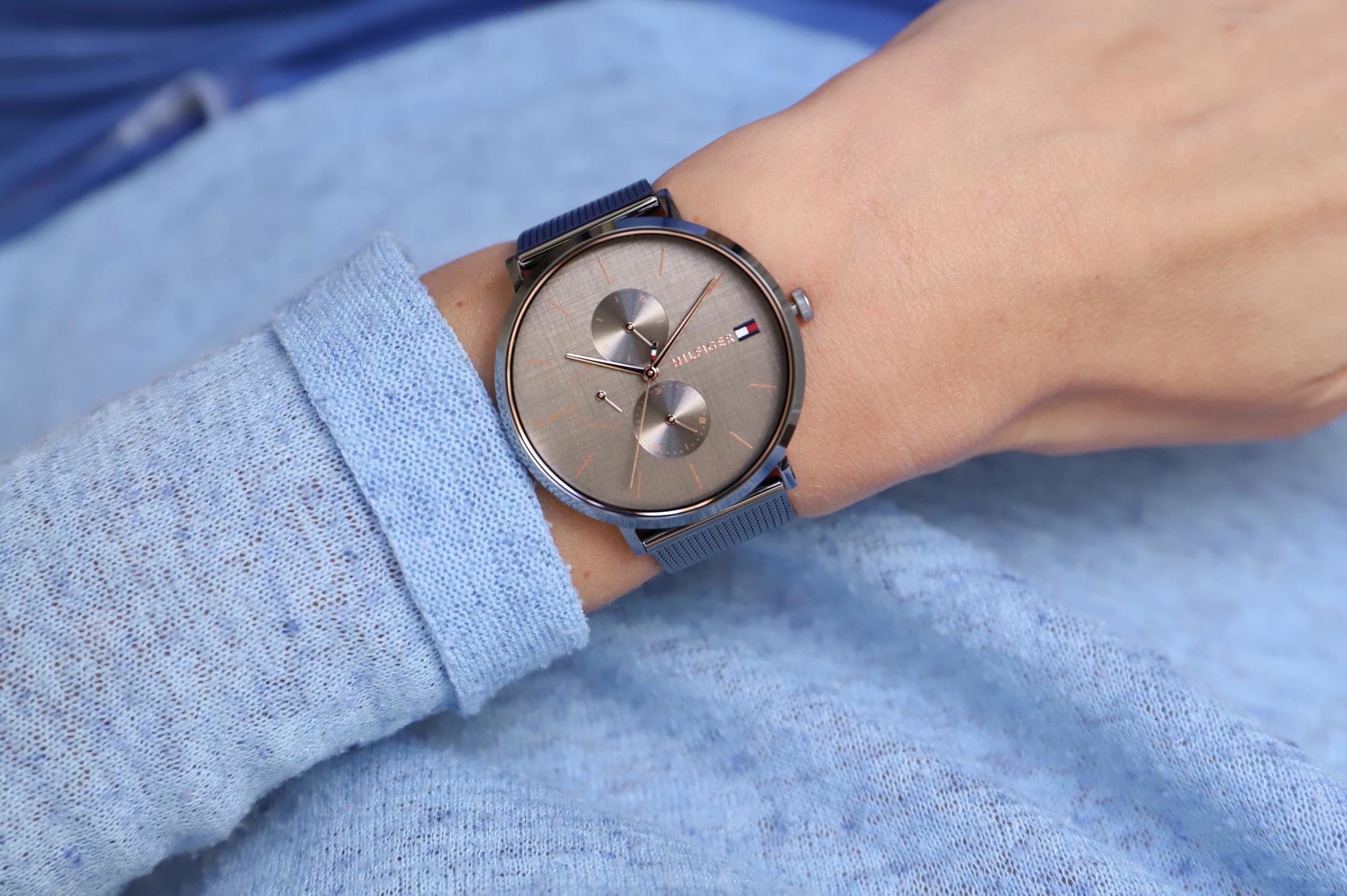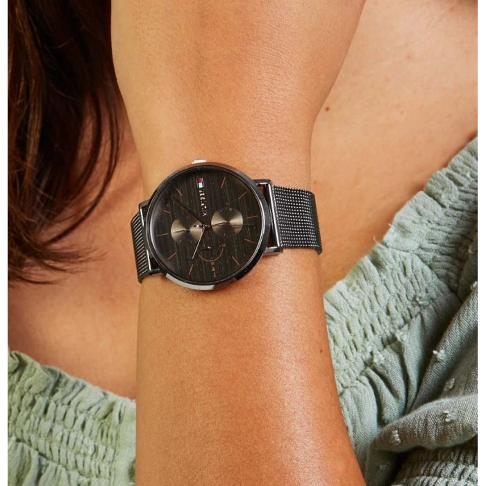 ساعة تومي هيلفيغر Tommy Hilfiger للسيدات أصلية موديل 1781945 Jenna لون رمادي و استيك معدن ستانلس ستيل لون رمادي.