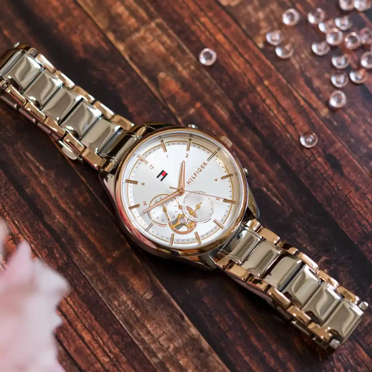 ساعة تومي هيلفيغر Tommy Hilfiger للنساء أصلية موديل 1782415 لون فضي و استيك معدن ستانلس لون فضي * روز جولد.