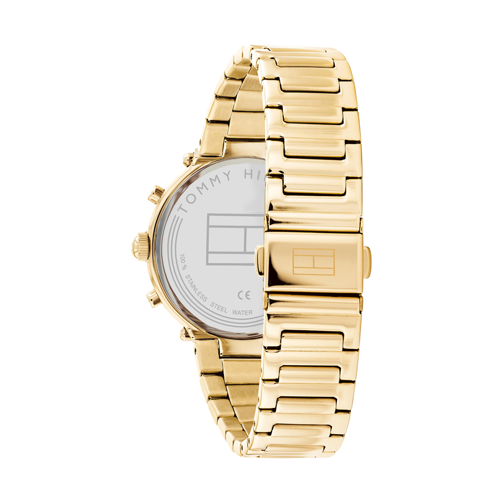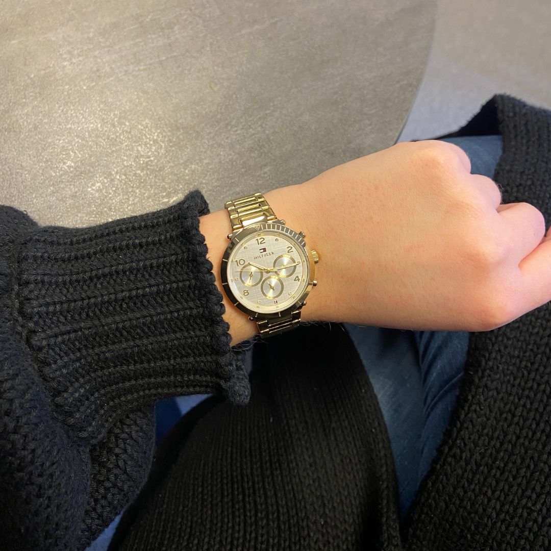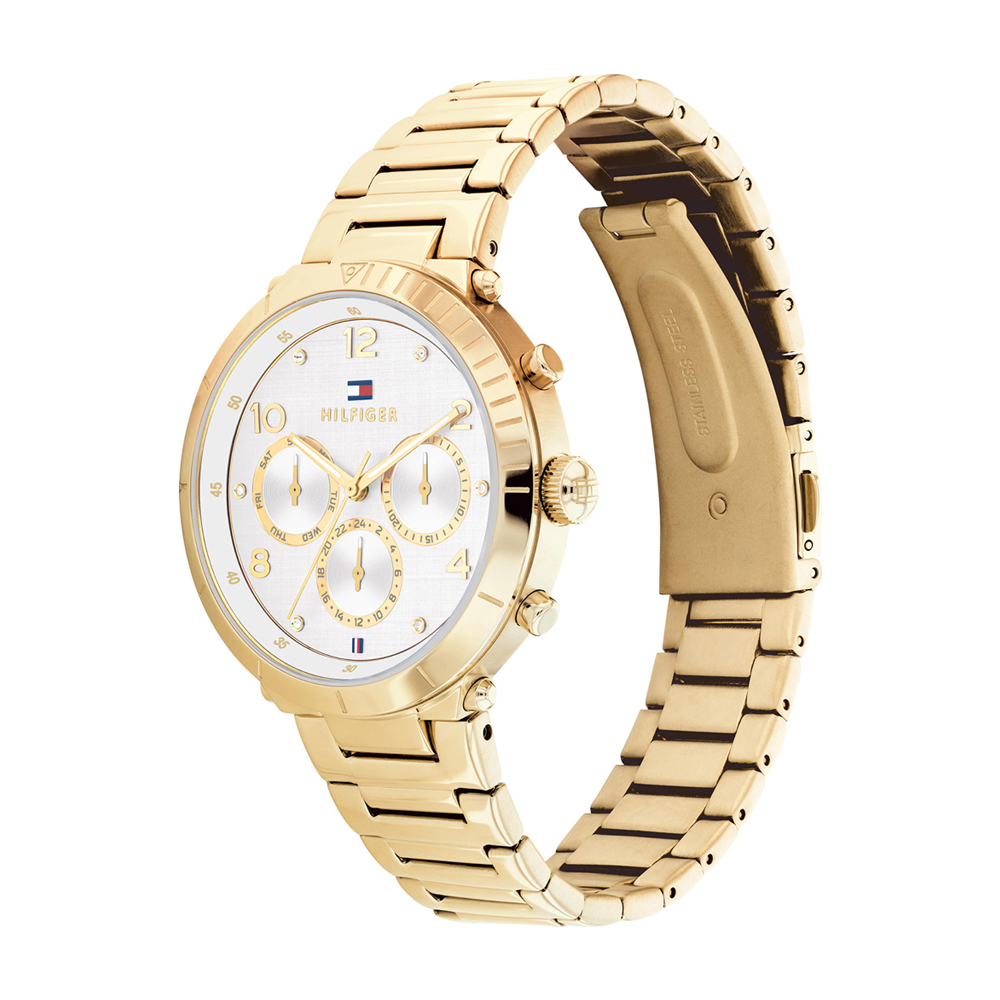 ساعة تومي هيلفيغر Tommy Hilfiger للنساء أصلية موديل 1782490 لون فضي و استيك معدن ستانلس ستيل لون ذهبي.