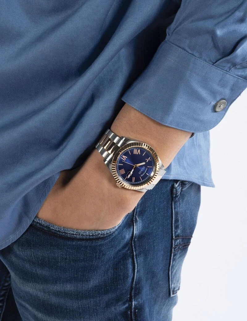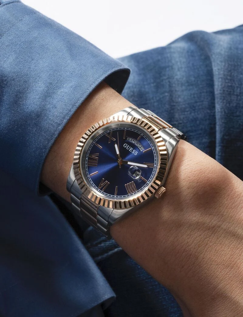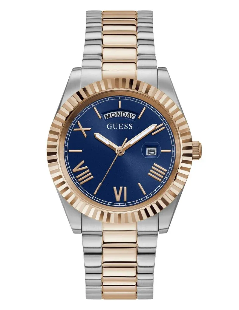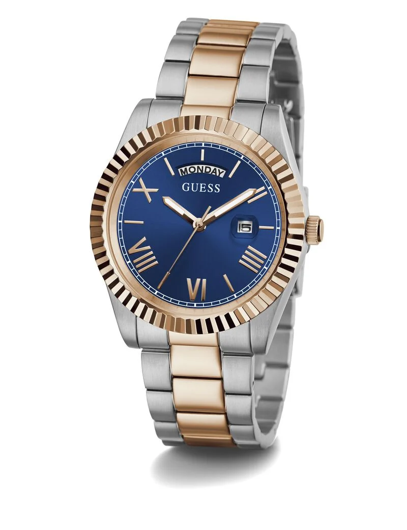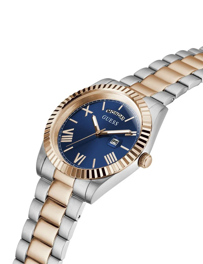 ساعة جيس Guess للرجال أصلية موديل GW0265G12 لون ازرق و استيك معدن ستانلس لون فضي * روز جولد.