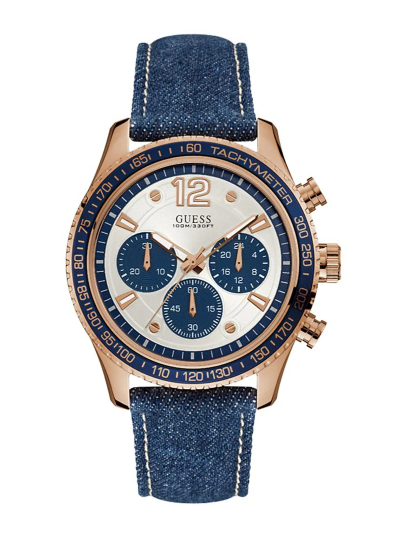 ساعة جيس للرجال اصلية موديل (فليت) Fleet W0970G3 بلون ابيض واستيك قماش جينز بلون ازرق