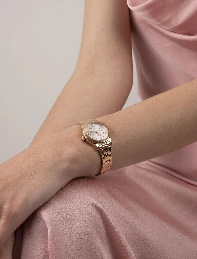 ساعة جيس للنساء أصلية موديل GW0033L3 لون ابيض و استيك معدن ستانلس لون روز جولد.