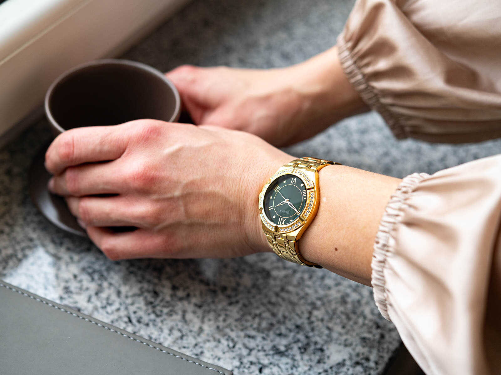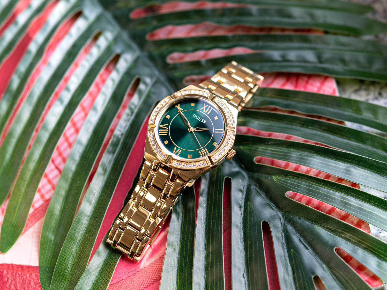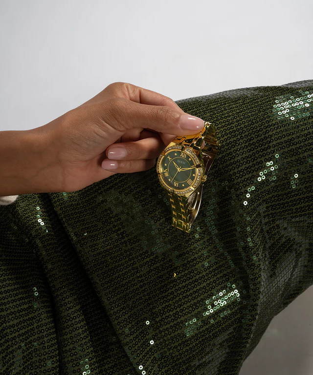 ساعة جيس للنساء أصلية موديل GW0033L8 لون اخضر و استيك معدن ستانلس لون ذهبي.