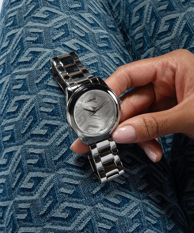 ساعة جيس Guess للنساء أصلية موديل GW0606L1 لون فضي و استيك معدن ستانلس لون فضي.