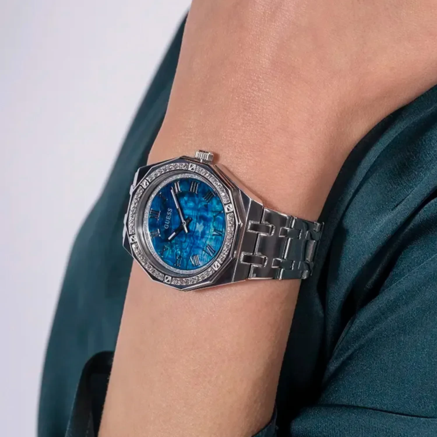 ساعة جيس للنساء أصلية موديل لون ازرق و استيك معدن لون فضي.