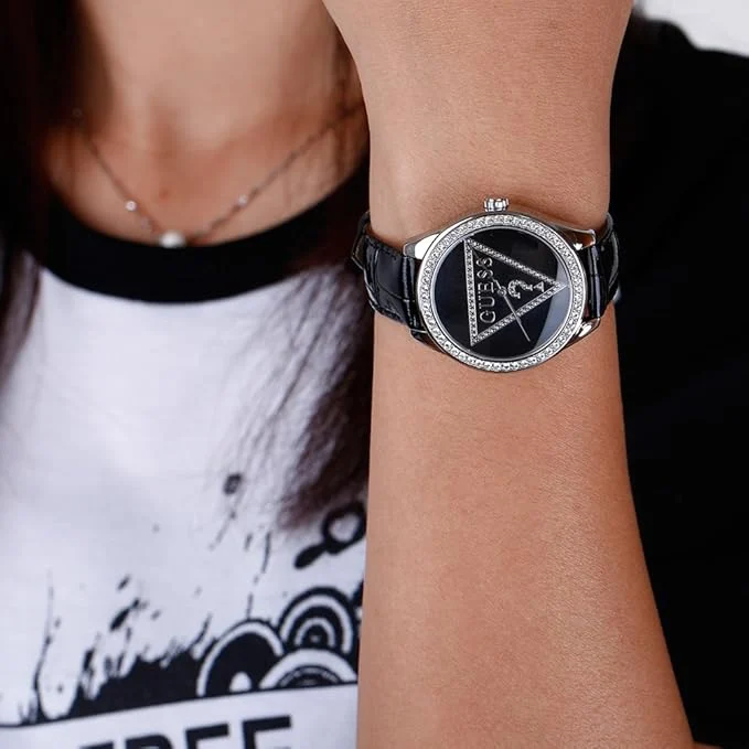 ساعة جيس Guess للنساء أصلية موديل W65006L2 لون اسود و استيك جلد طبيعي لون اسود.