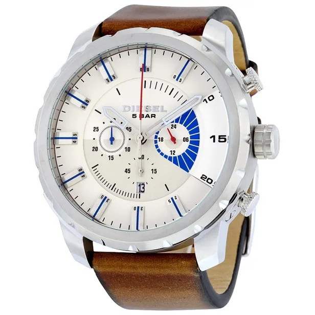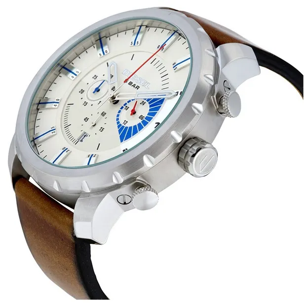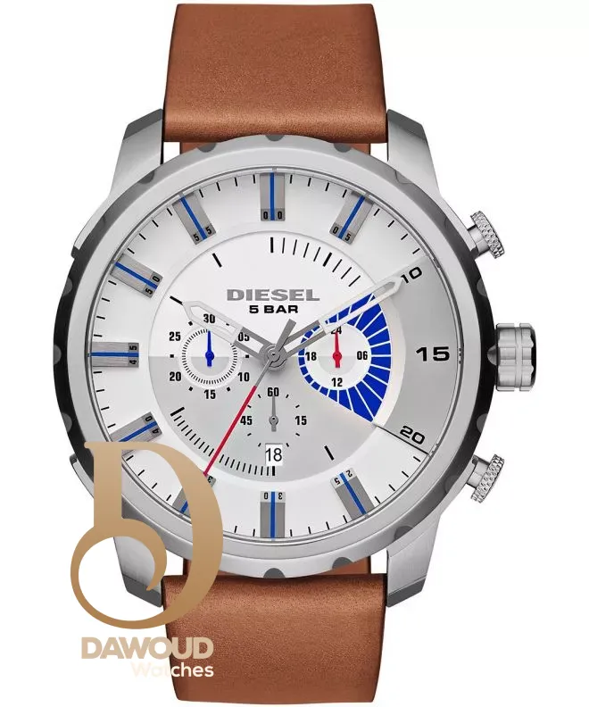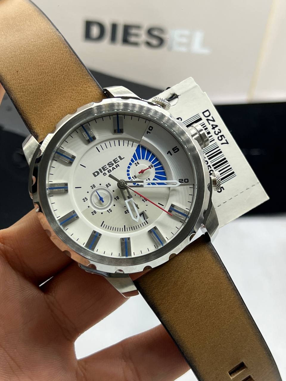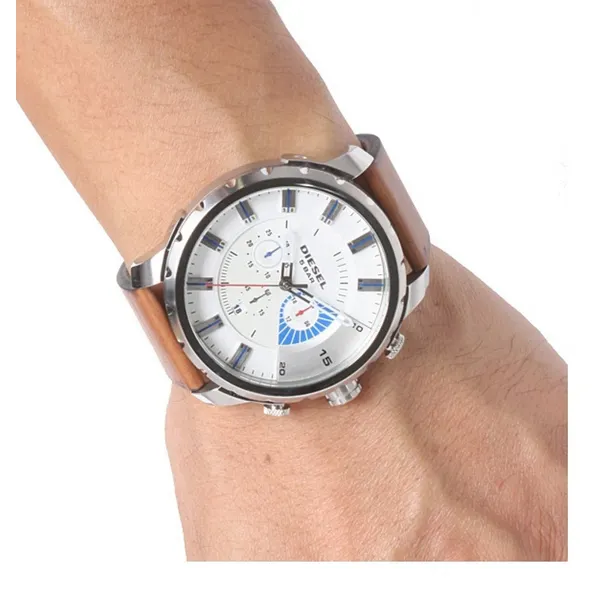ساعة ديزل Diesel للرجال اصلية موديل DZ4357 لون ابيض واستيك جلد طبيعي لون بني.