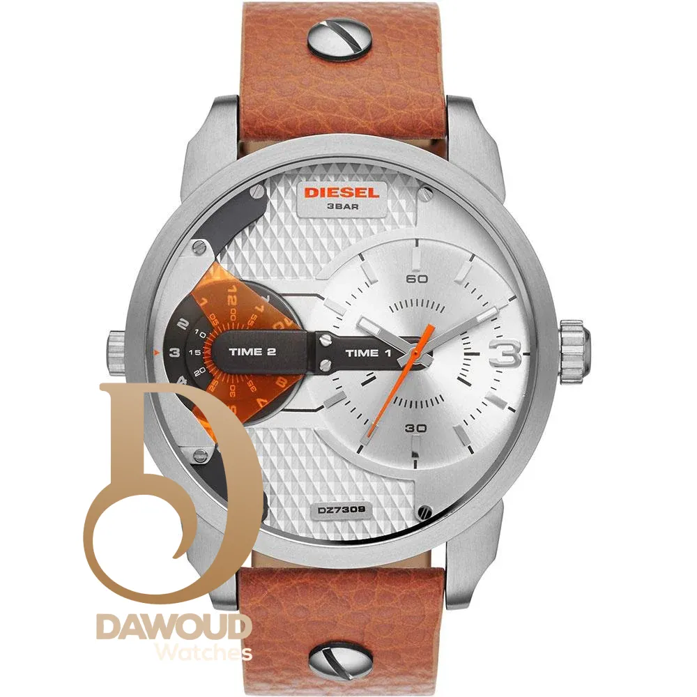 ساعة ديزل Diesel للرجال أصلية موديل Mini Daddy DZ7309 لون فضي و استيك جلد طبيعي لون بني.