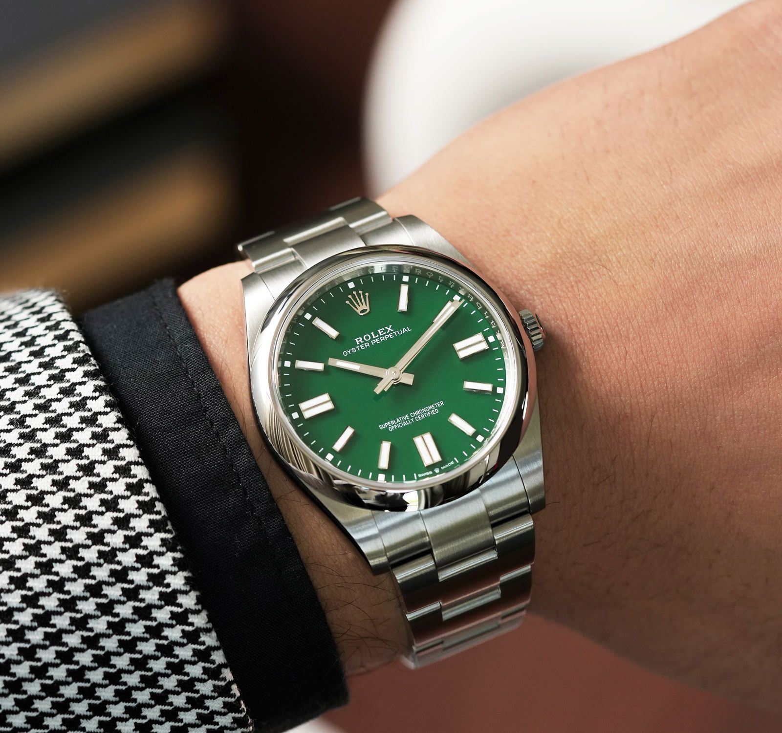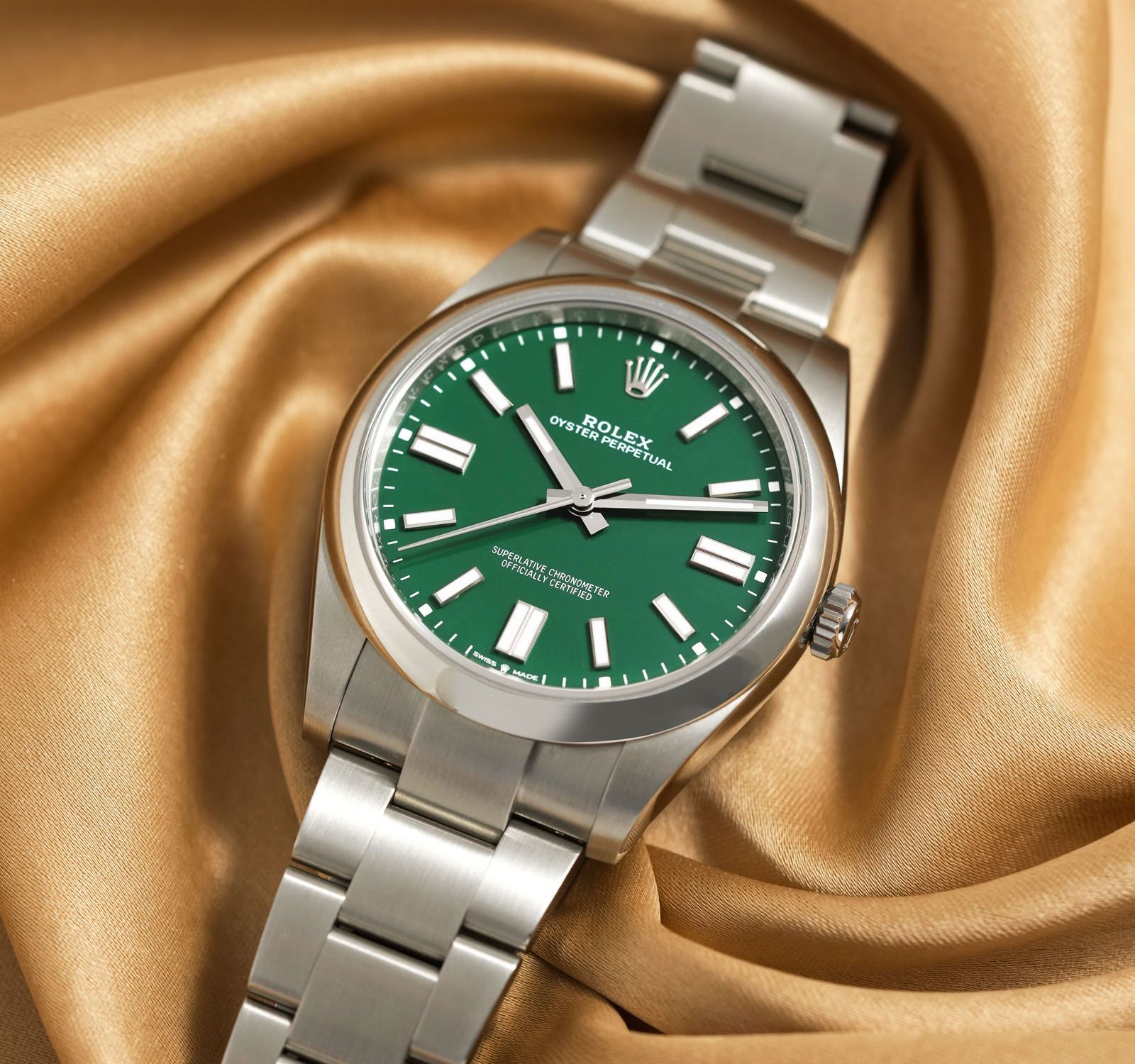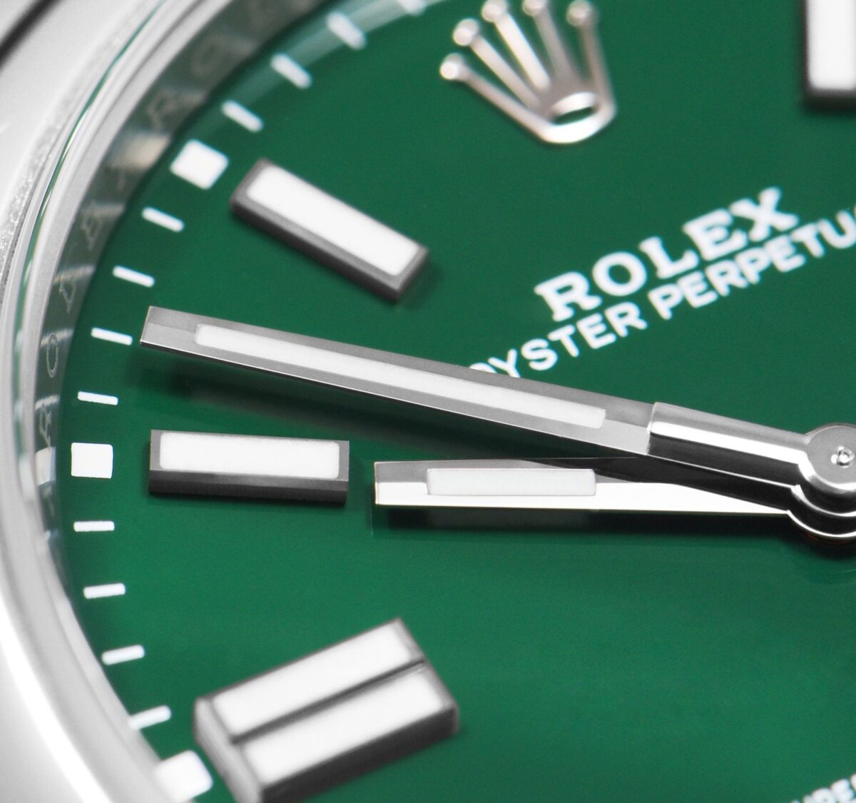 ساعة رولكس Rolex للرجال و النساء (ميرور اوريجنال) موديل Oyster Perpetual 277200-0006 لون اخضر و استيك معدن ستانلس لون فضي.