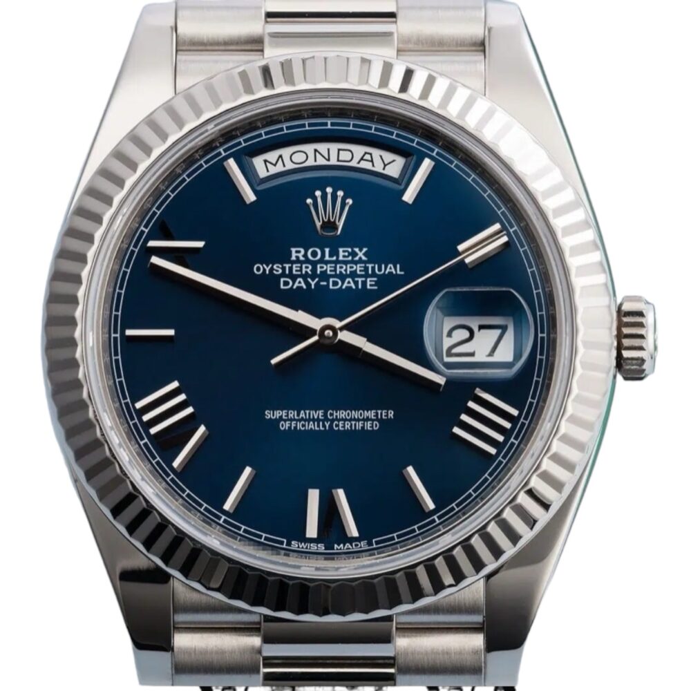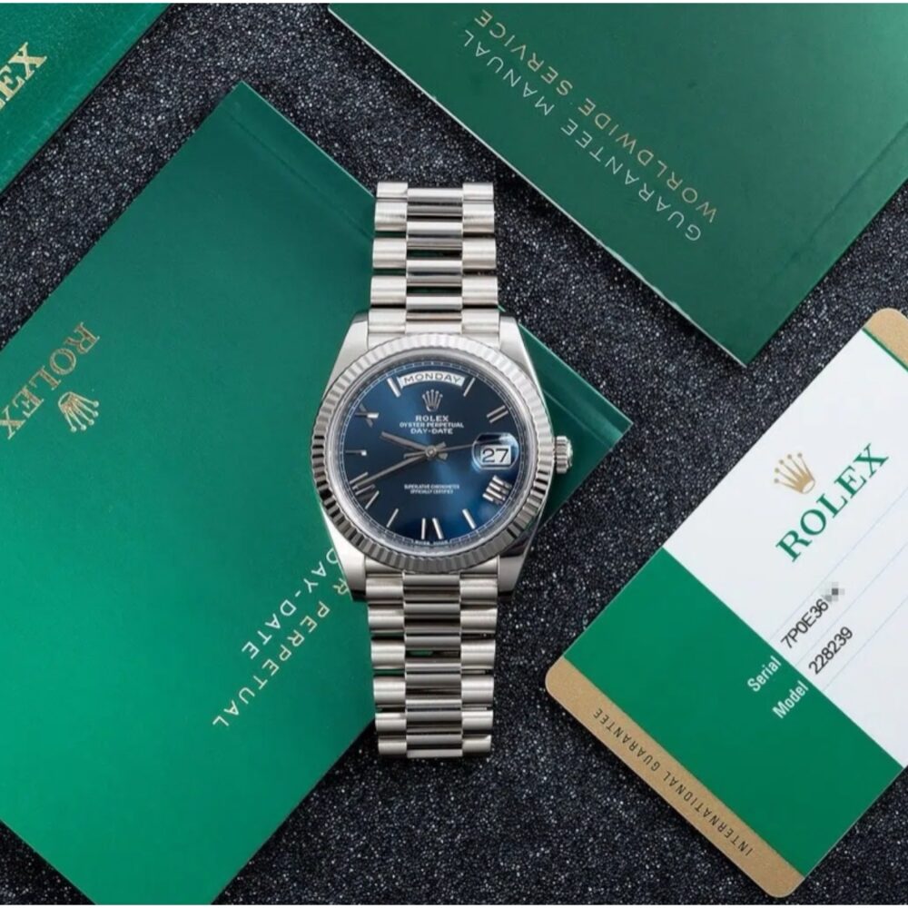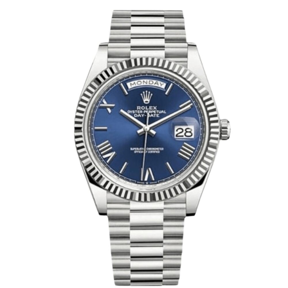 ساعه رولكس داي ديت ميرور اوريجينال بلون ازرق واوستيك ستنلس ستيل بلون فضي