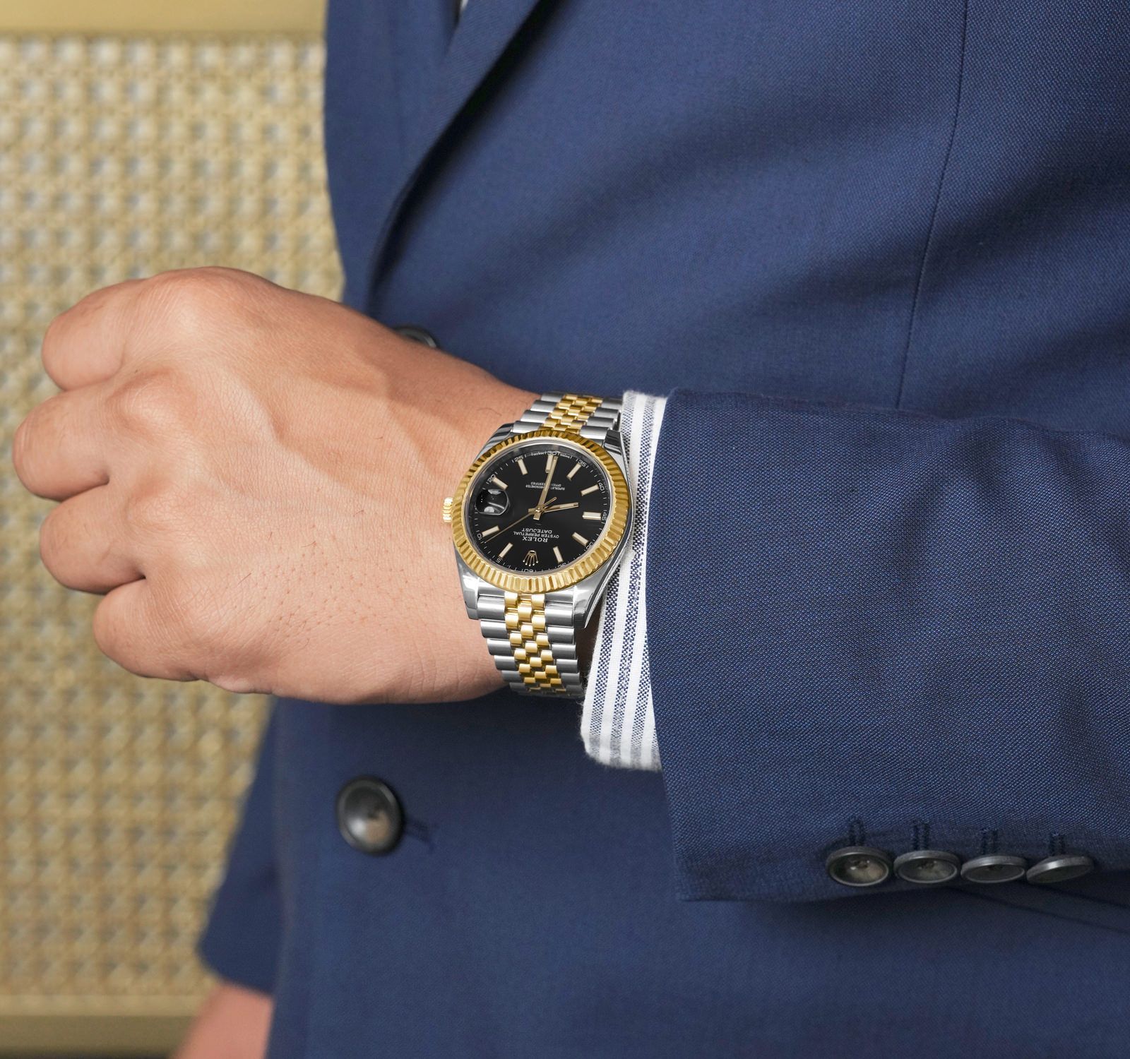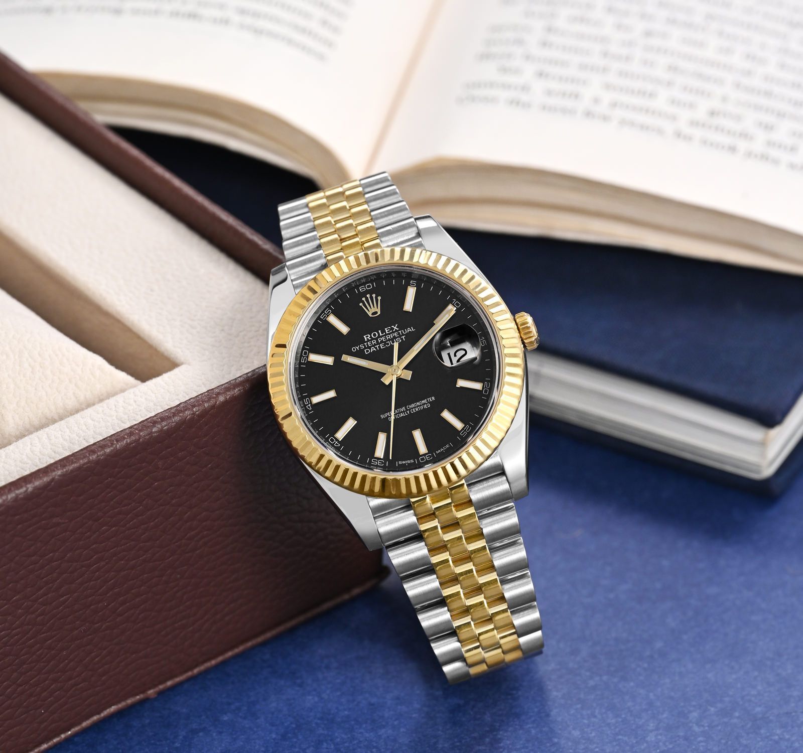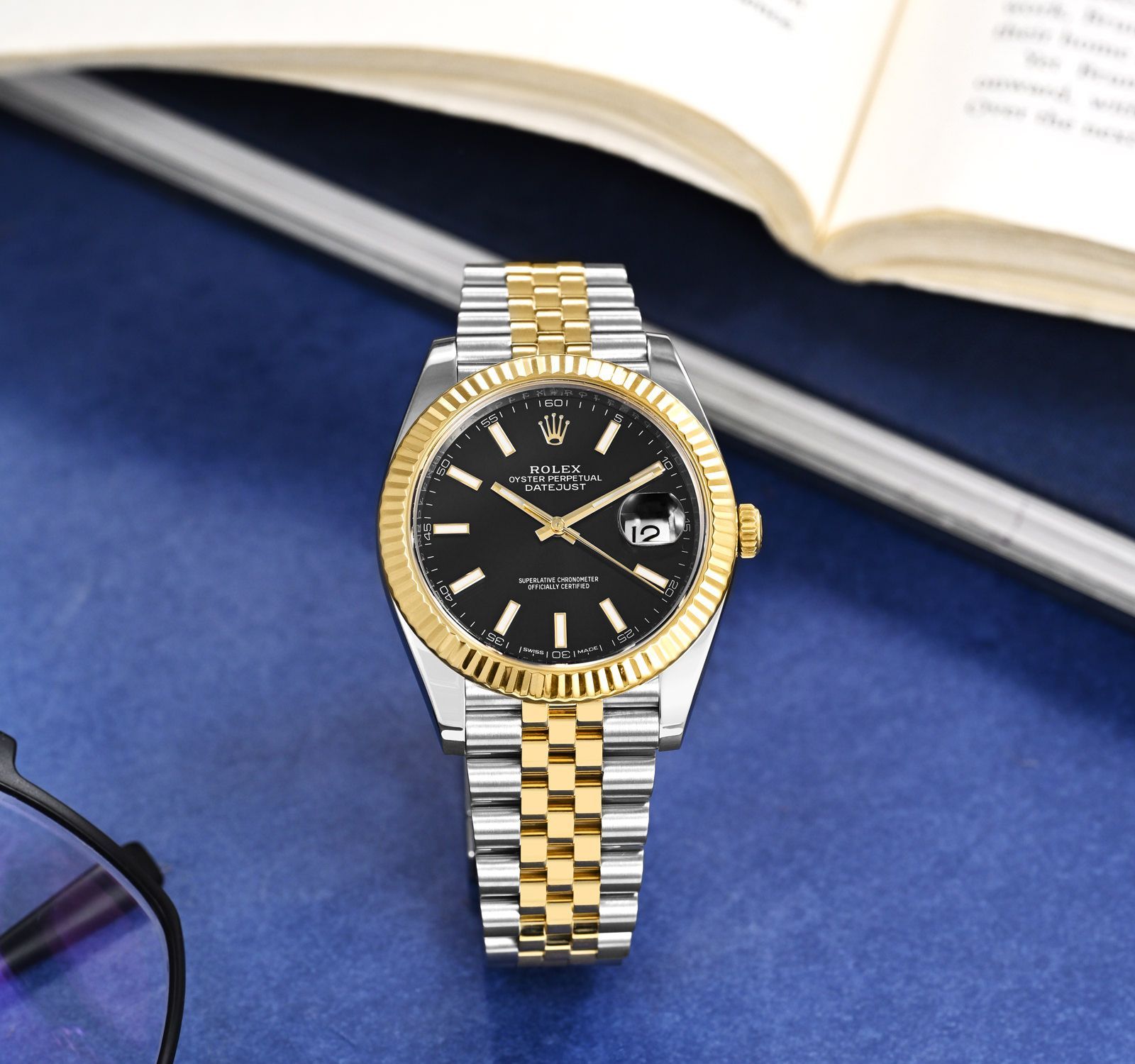 ساعة رولكس Rolex للرجال (ميرور اوريجنال) موديل Datejust 126333-0014 لون اسود و استيك معدن ستانلس لون فضي * ذهبي.