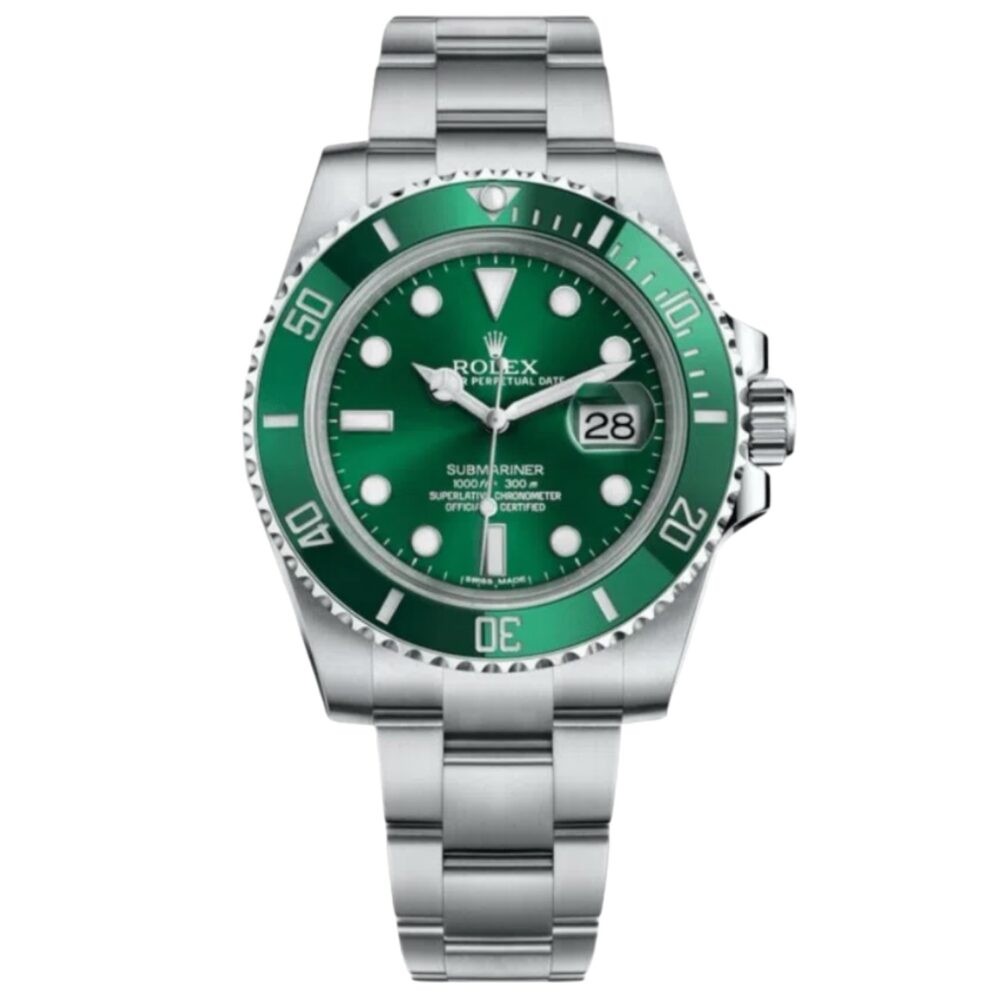 ساعة رولكس صب مارينر ميرور اورجينال بلون اخضر واوستيك فضي