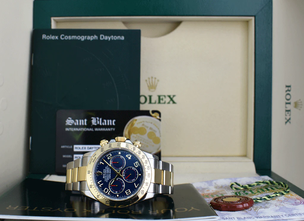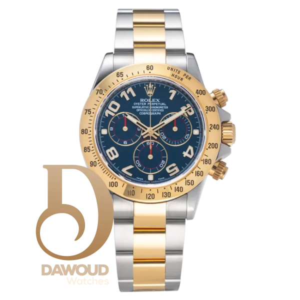 ساعة رولكس Rolex للرجال (ميرور اوريجنال) موديل Daytona 116523/8 لون ازرق و استيك معدن ستانلس لون فضي * ذهبي.