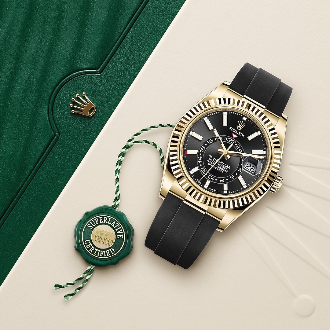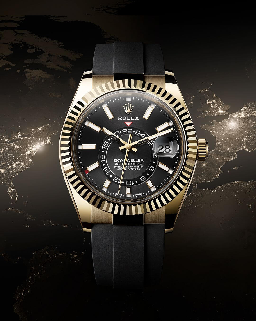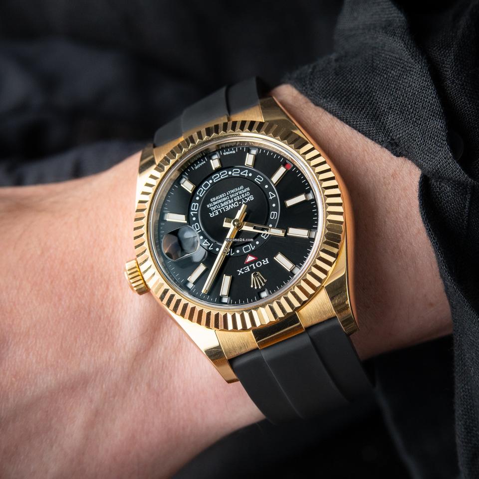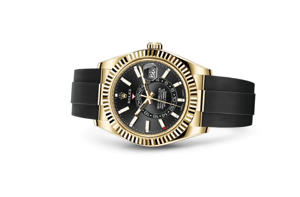 ساعة رولكس Rolex للرجال (ميرور اوريجنال) موديل Sky-Dweller 326238-0009 لون اسود و استيك سيليكون مطاط لون اسود.