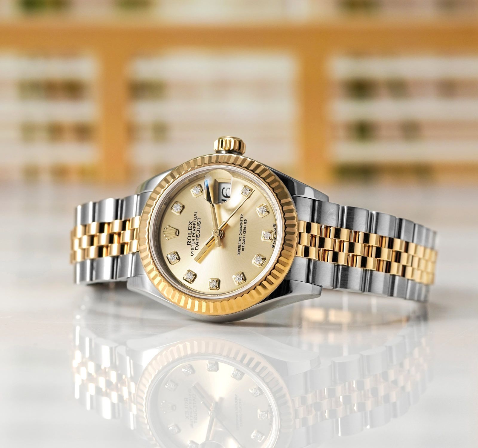 ساعة رولكس Rolex للنساء (ميرور اوريجنال) موديل Datejust 279173-0011 لون ذهبي و استيك معدن ستانلس لون فضي * ذهبي.