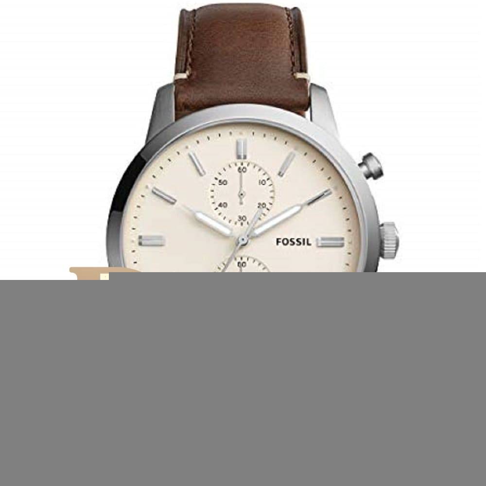 ساعة فوسيل للرجال اصلية موديل (تاونز مان) Townsman FS5350 بلون ابيض واستيك جلد بلون بني