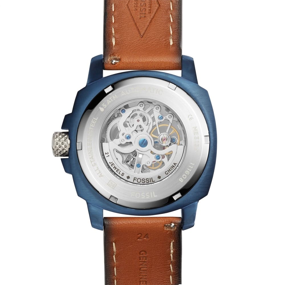 ساعة فوسيل للرجال اصلية موديل (مودرن ماشين) Modern Machine ME3135 بلون ازرق واستيك جلد بلون بنى