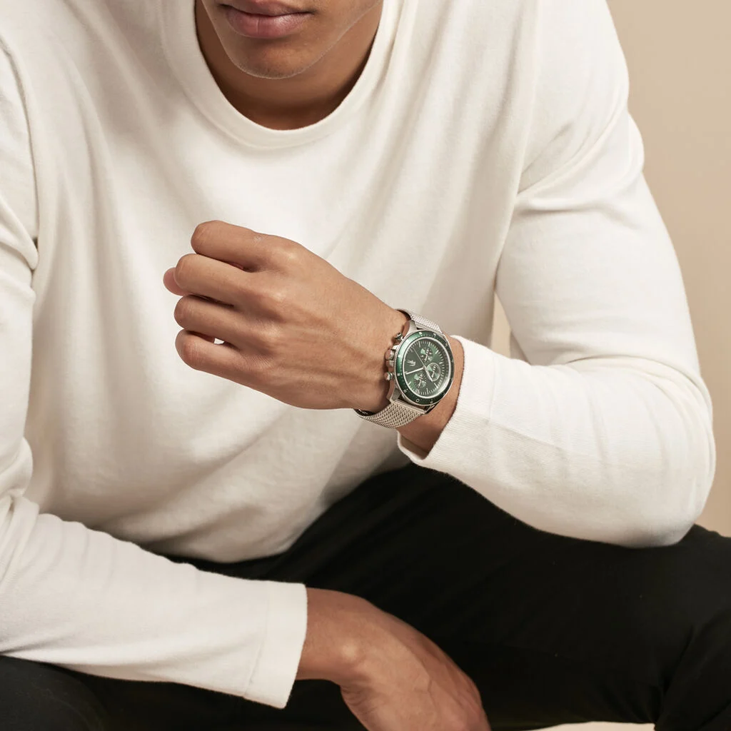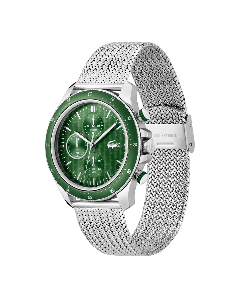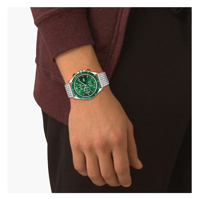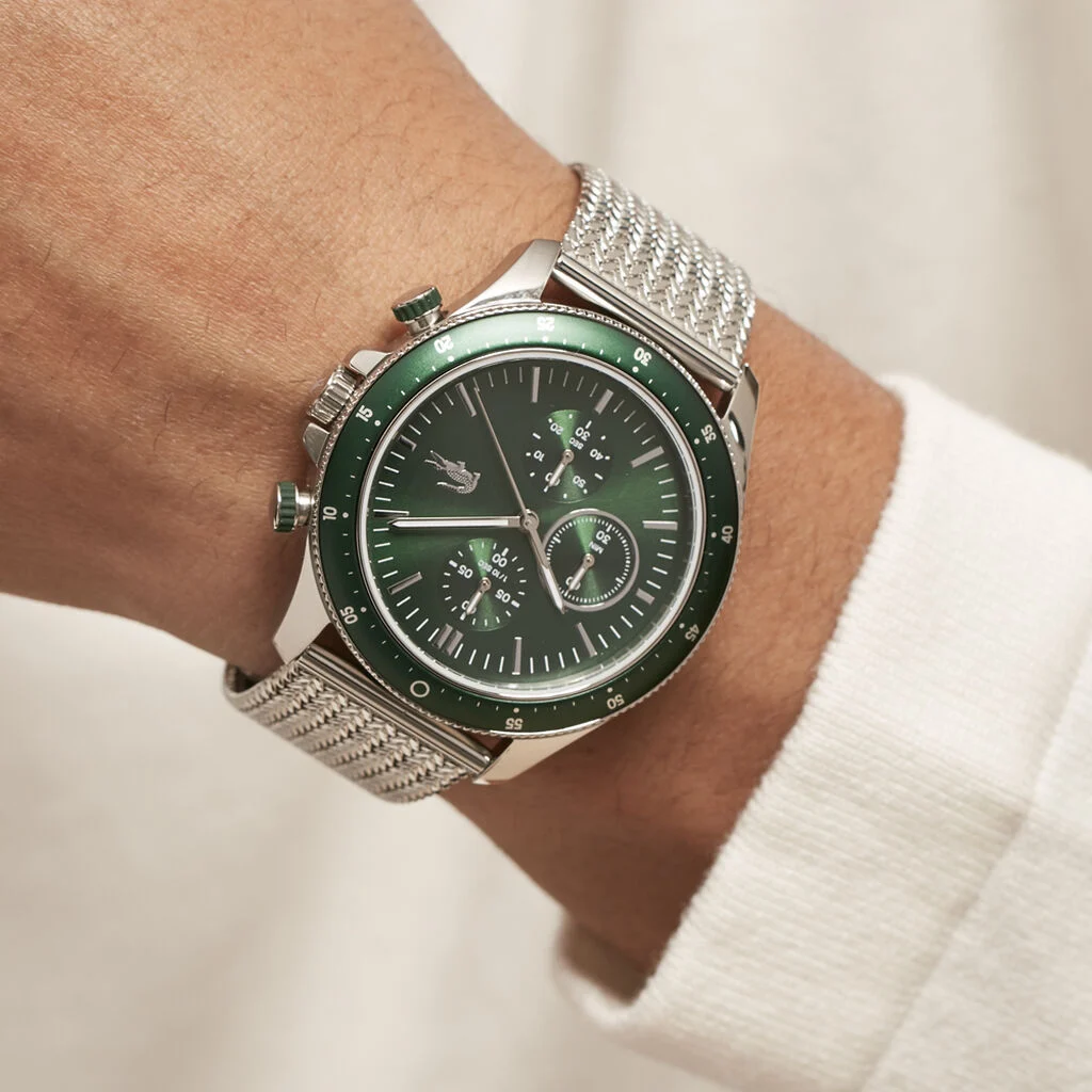 ساعة لاكوست Lacoste للرجال أصلية موديل 2011255 لون اخضر و استيك معدن ستانلس لون فضي.