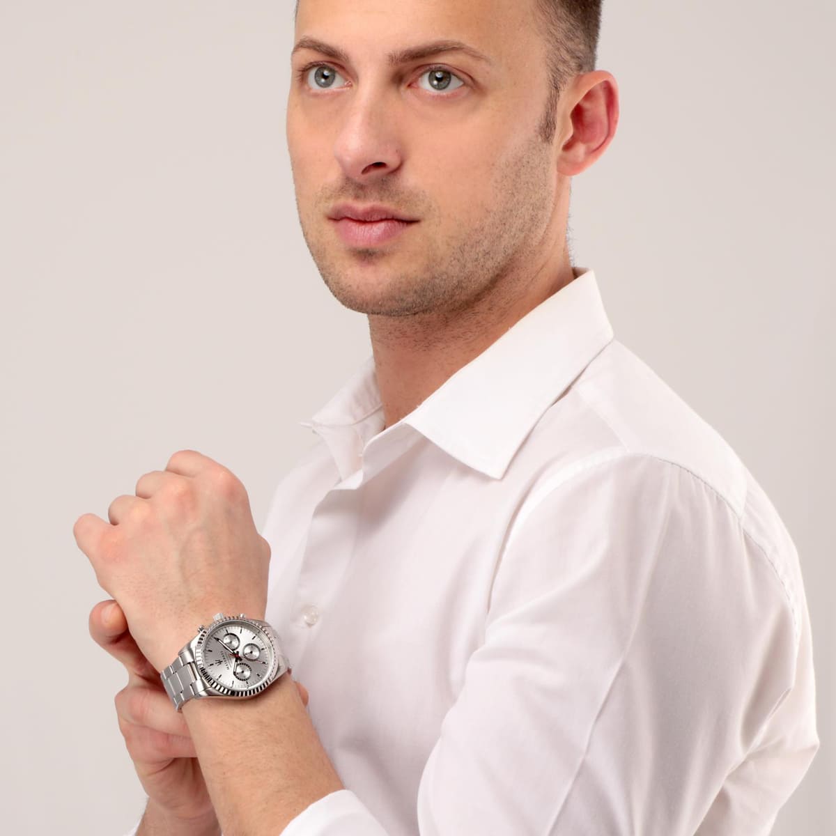 ساعة مازيراتي رجالي أصلية موديل (كومبيتيسيوني) R8853100018 Competizione بلون فضي و استيك معدن ستانلس ستيل بلون فضي