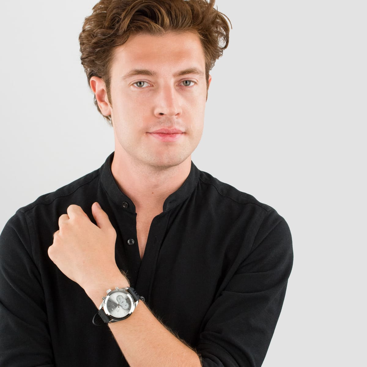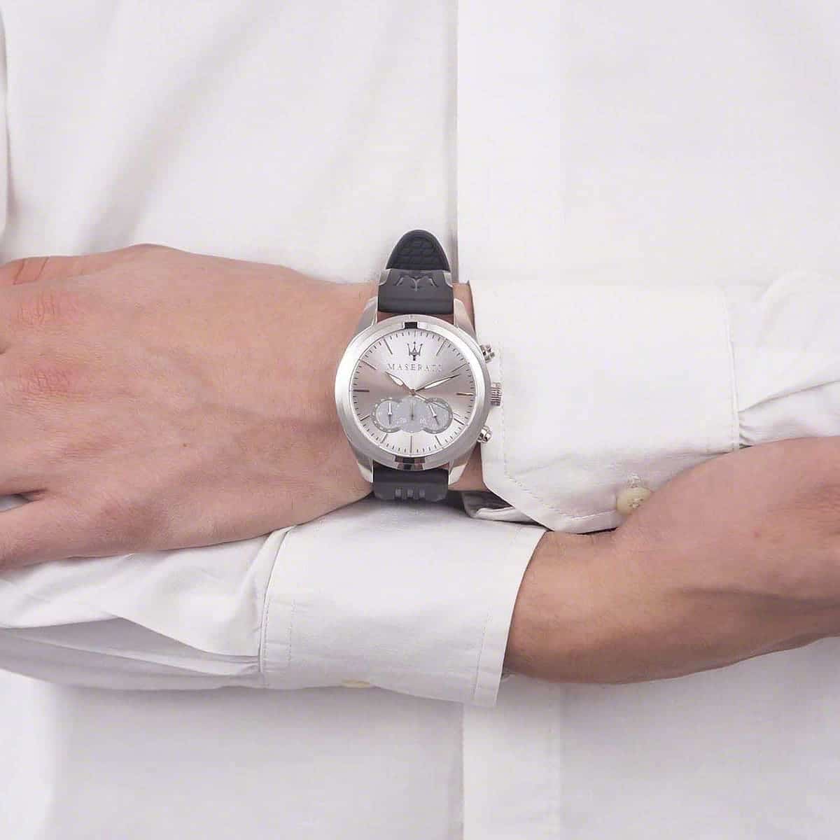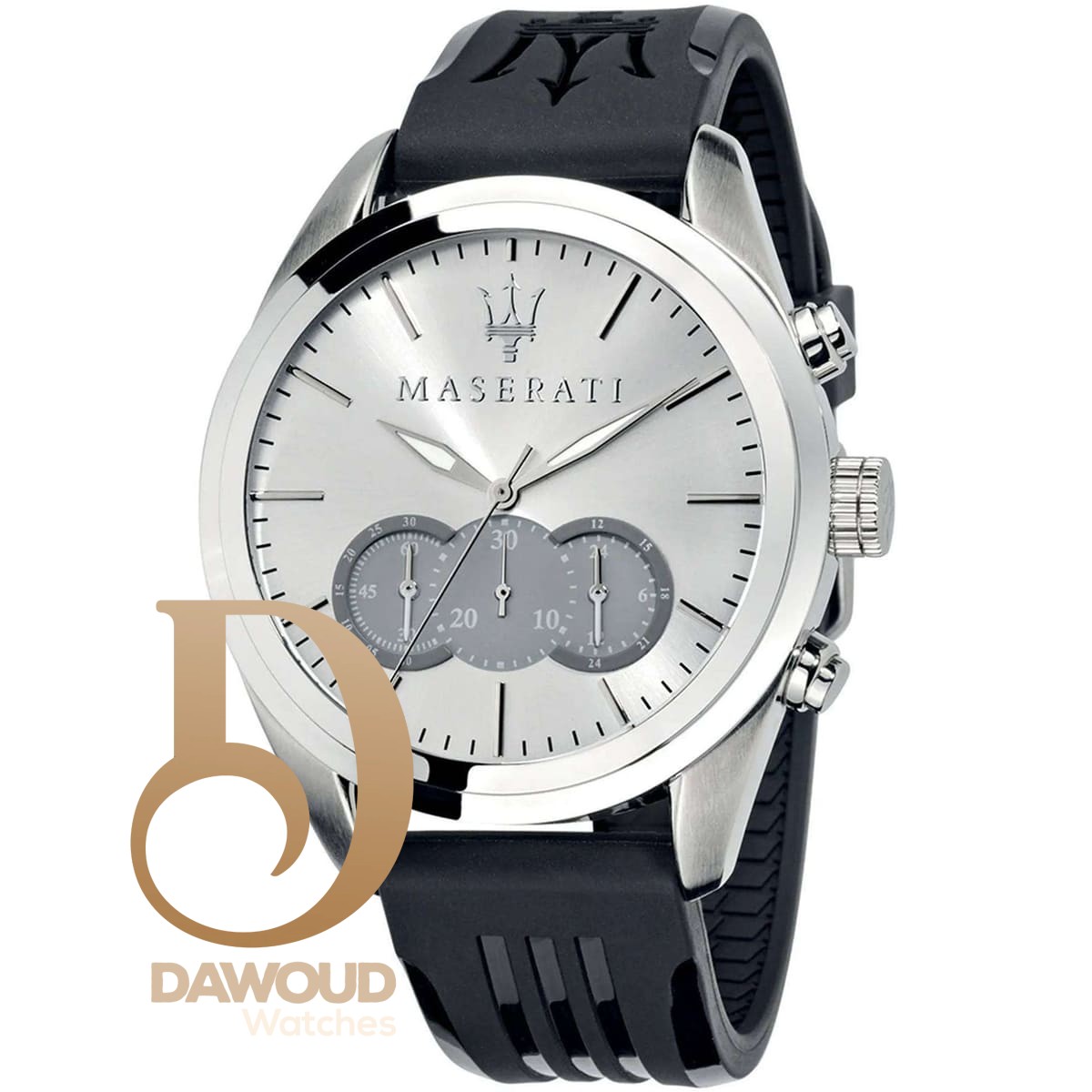ساعة مازيراتي رجالي أصلية موديل (تراجواردو) R8871612012 Traguardo بلون فضي و استيك مطاط بلون اسود