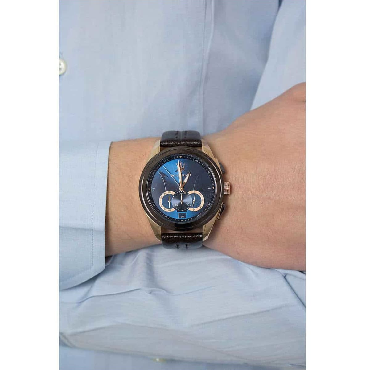 ساعة مازيراتي رجالي أصلية موديل (تراجواردو) R8871612024 Traguardo بلون اسود و استيك جلد طبيعي بلون اسود