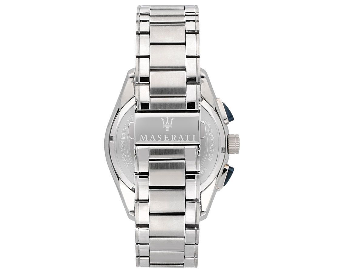 ساعة مازيراتي للرجال اصلية موديل Traguardo R8873612014 لون ازرق و استيك معدن ستانلس لون فضي.