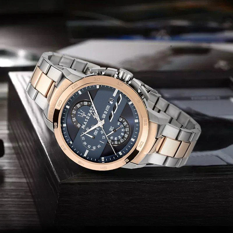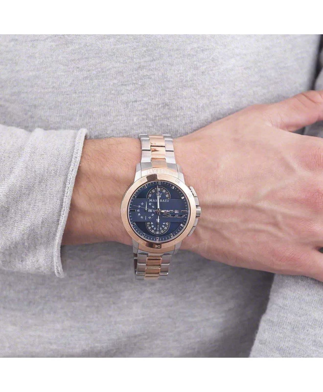 ساعة مازيراتي للرجال اصلية موديل R8873619002 لون ازرق و استيك لون فضي * روز جولد.