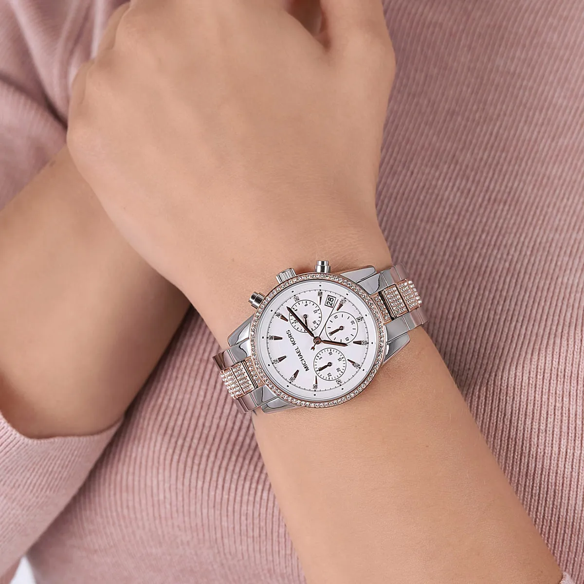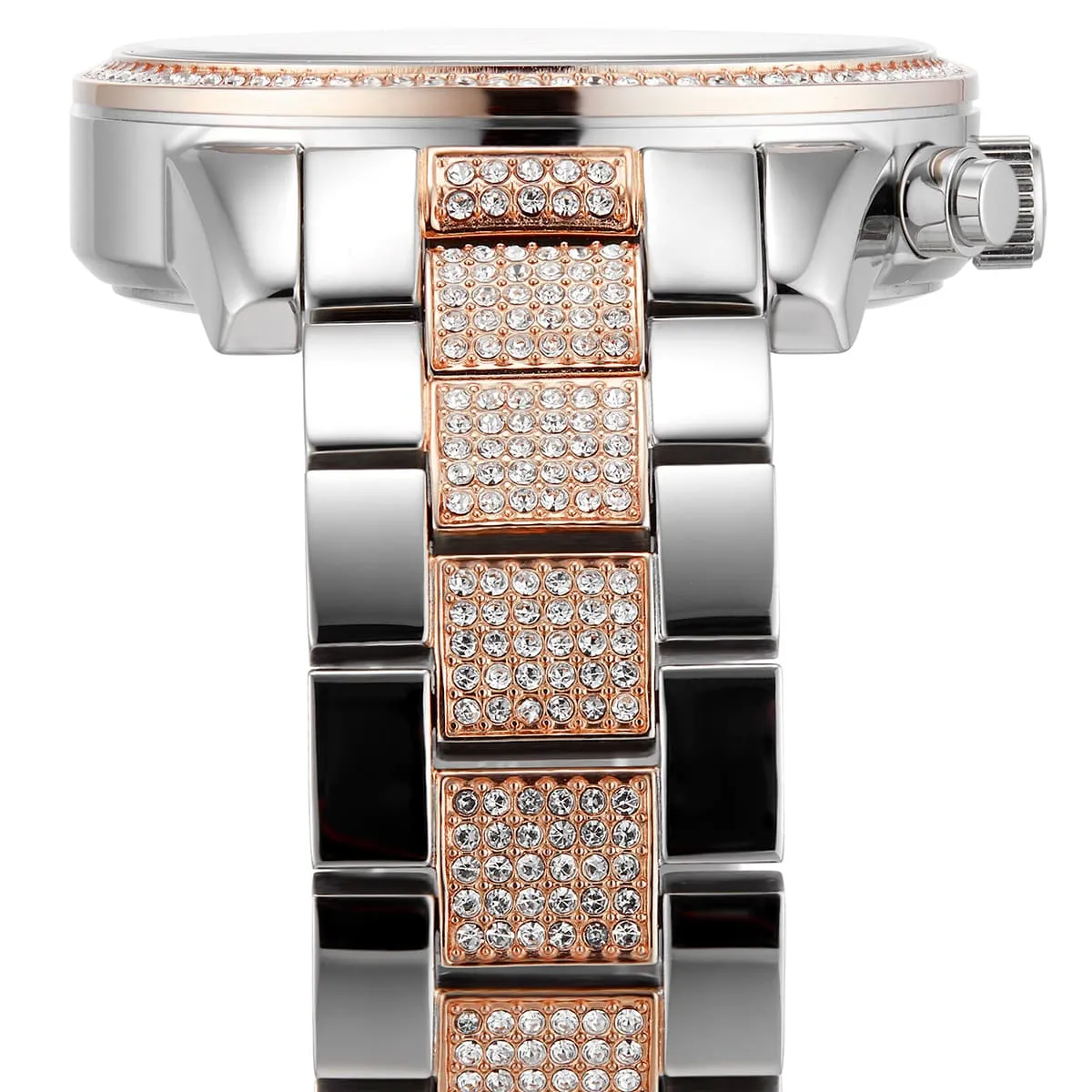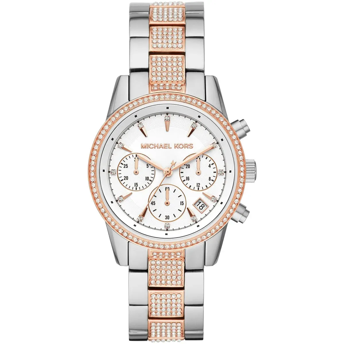 ساعة مايكل كورس Michael Kors للسيدات أصلية موديل ( ريتز ) MK6651 Ritz بلون فضي و استيك معدن بلون فضي و نحاسي
