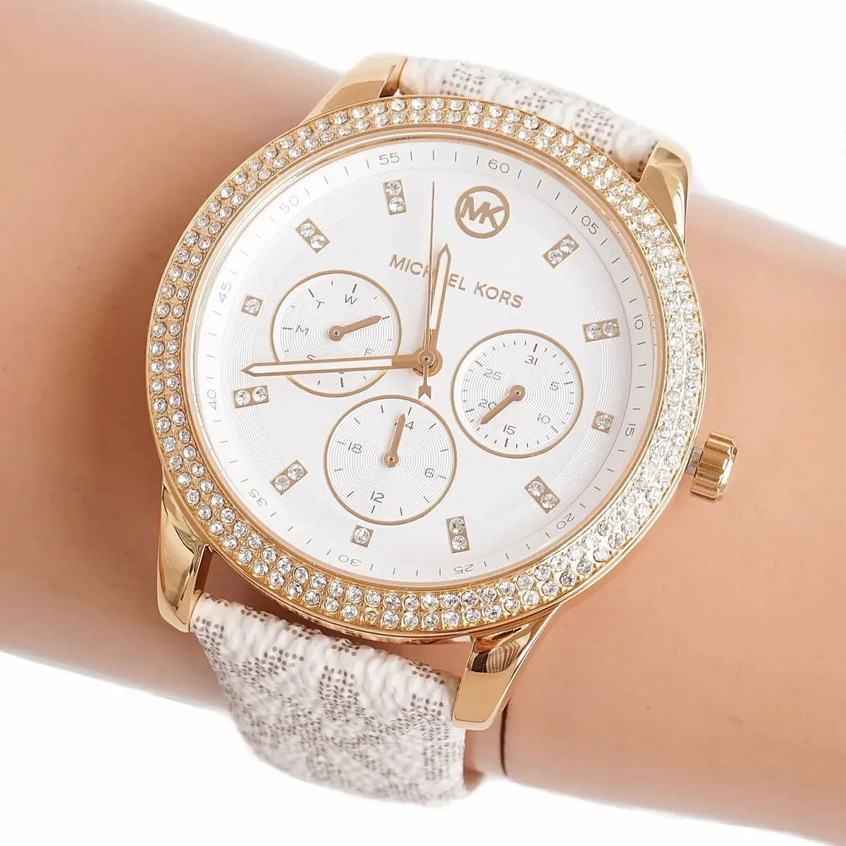 الساعة مزينة بفصوص كريستال
