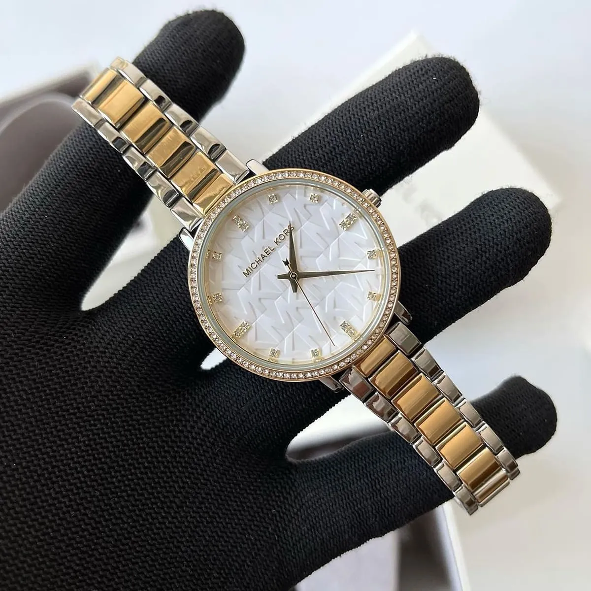 الساعة مزينة بشعار MK