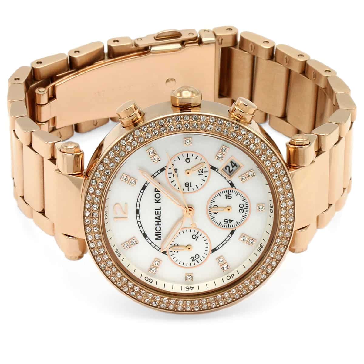 ساعة مايكل كورس للسيدات أصلية موديل (باركر) Parker MK5491 بلون ابيض و استيك معدن بلون نحاسي