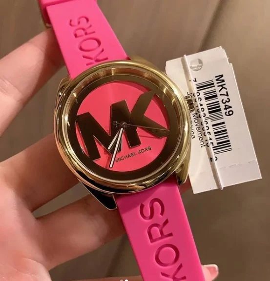 ساعة مايكل كورس Michael Kors للنساء أصلية موديل MK7349 لون وردي و اوستيك سيليكون مطاط لون وردي.