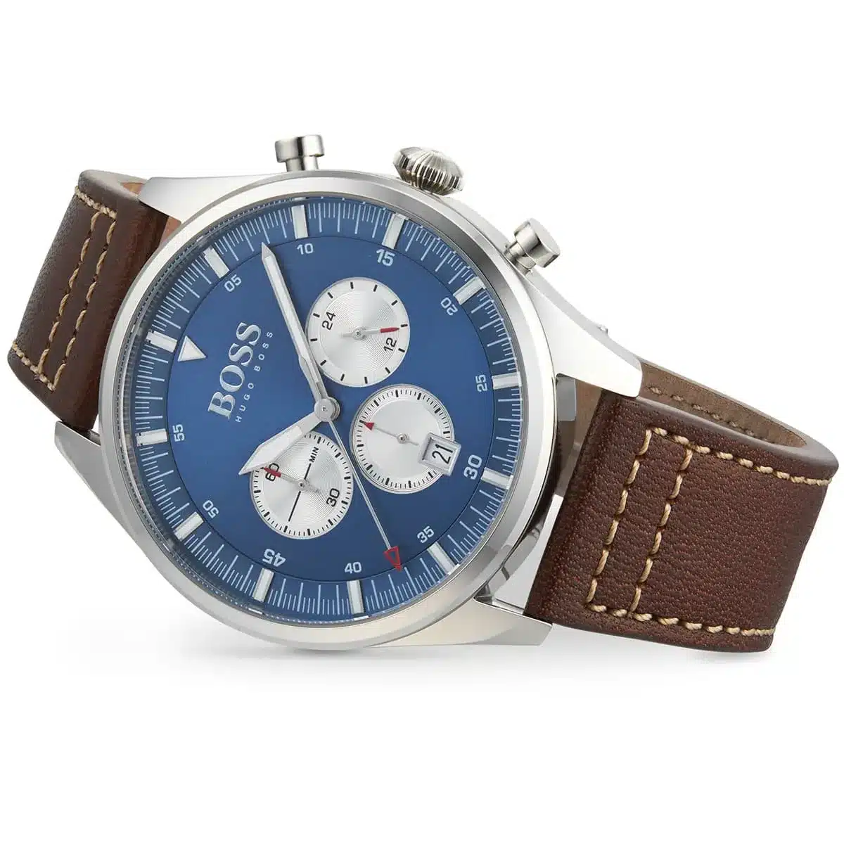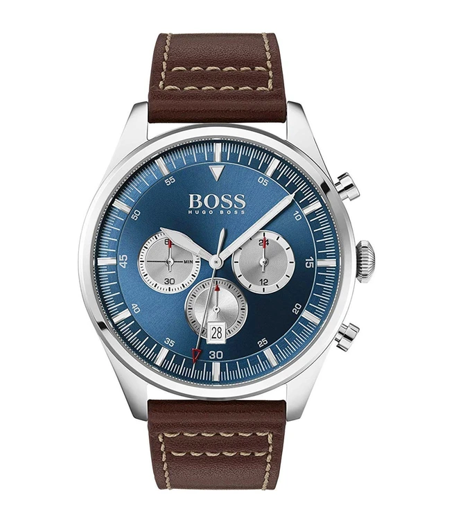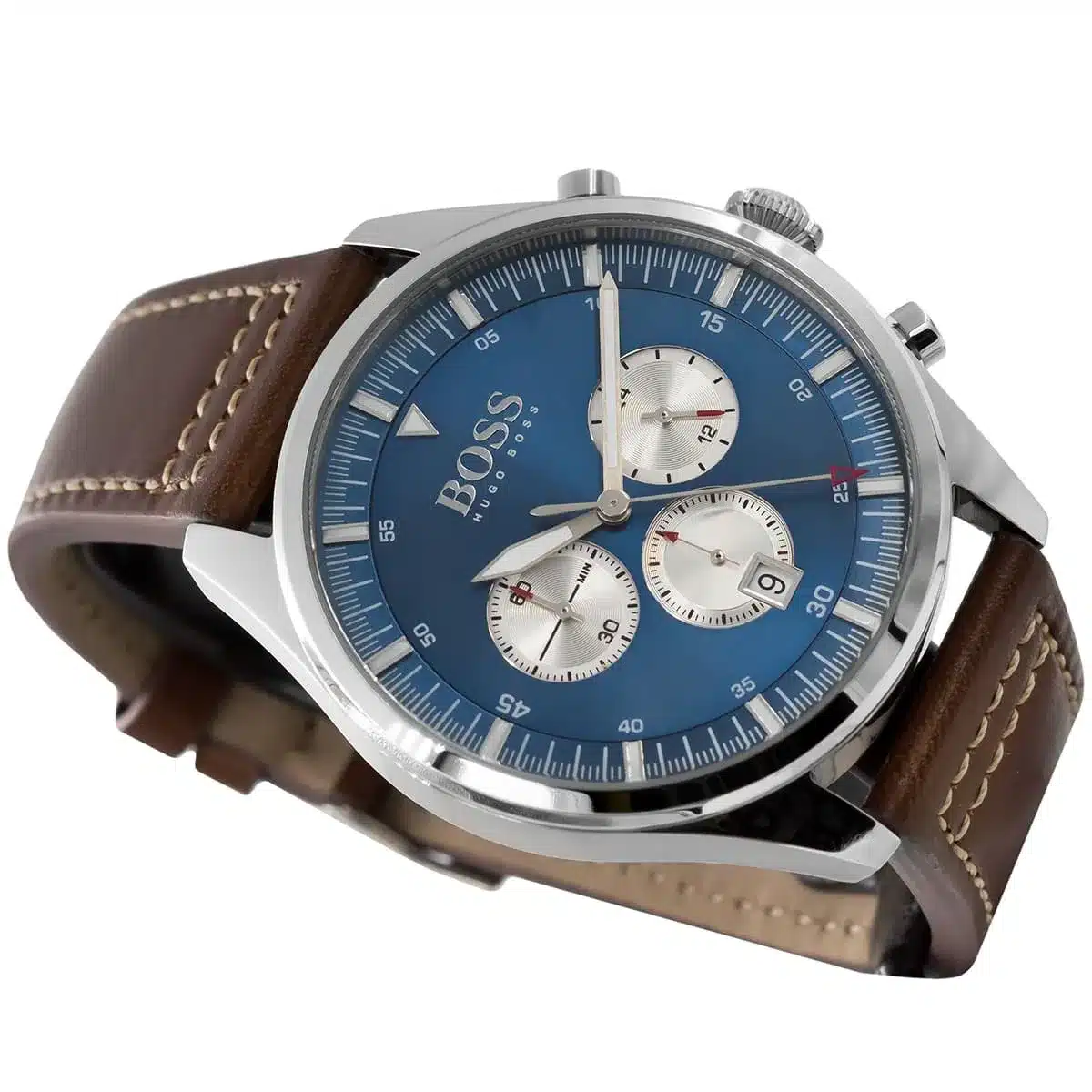 ساعة هوجو بوس للرجال أصلية موديل لون ازرق و استيك جلد طبيعي لون بني.