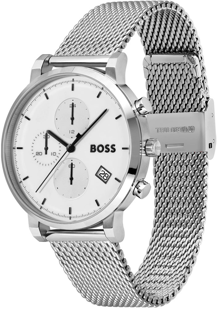 ساعة هوجو بوس للرجال اصلية موديل 1513933 بلون سيلفر استراب معدن ستالس ضد الصدا ضمان لمدة عامين